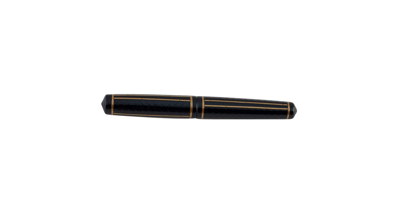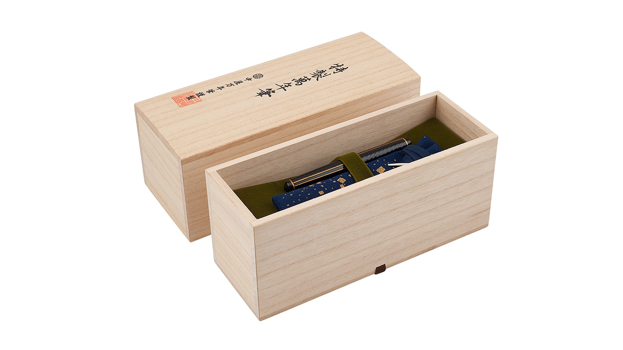Корпус ручки выполнен в форме сигары из эбонита и покрыт лаком с дизайном адзиро.