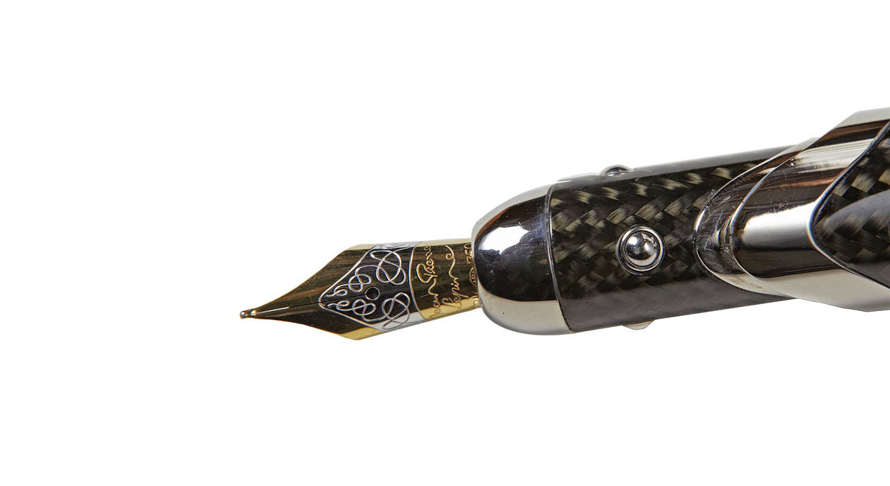 На корпусе имеются закруглённые фаски для плавного подвода колпачка. Колпачок надёжно зафиксирован с помощью расширяемых шарикоподшипников, создавая визуальный эффект монолитности. Металлические детали изготовлены из палладия. Центральная часть корпуса изготовлена из углеродного волокна и имеет плетёную текстуру. Все поверхности отполированы до зеркального блеска. В комплект входит оригинальный чехол чёрного цвета из кожи страуса. В комплект входит элегантная панорамная коробка из клёна.