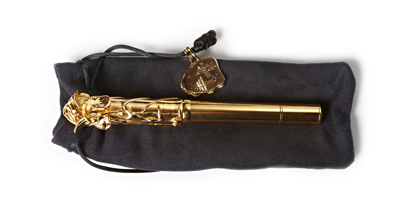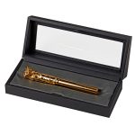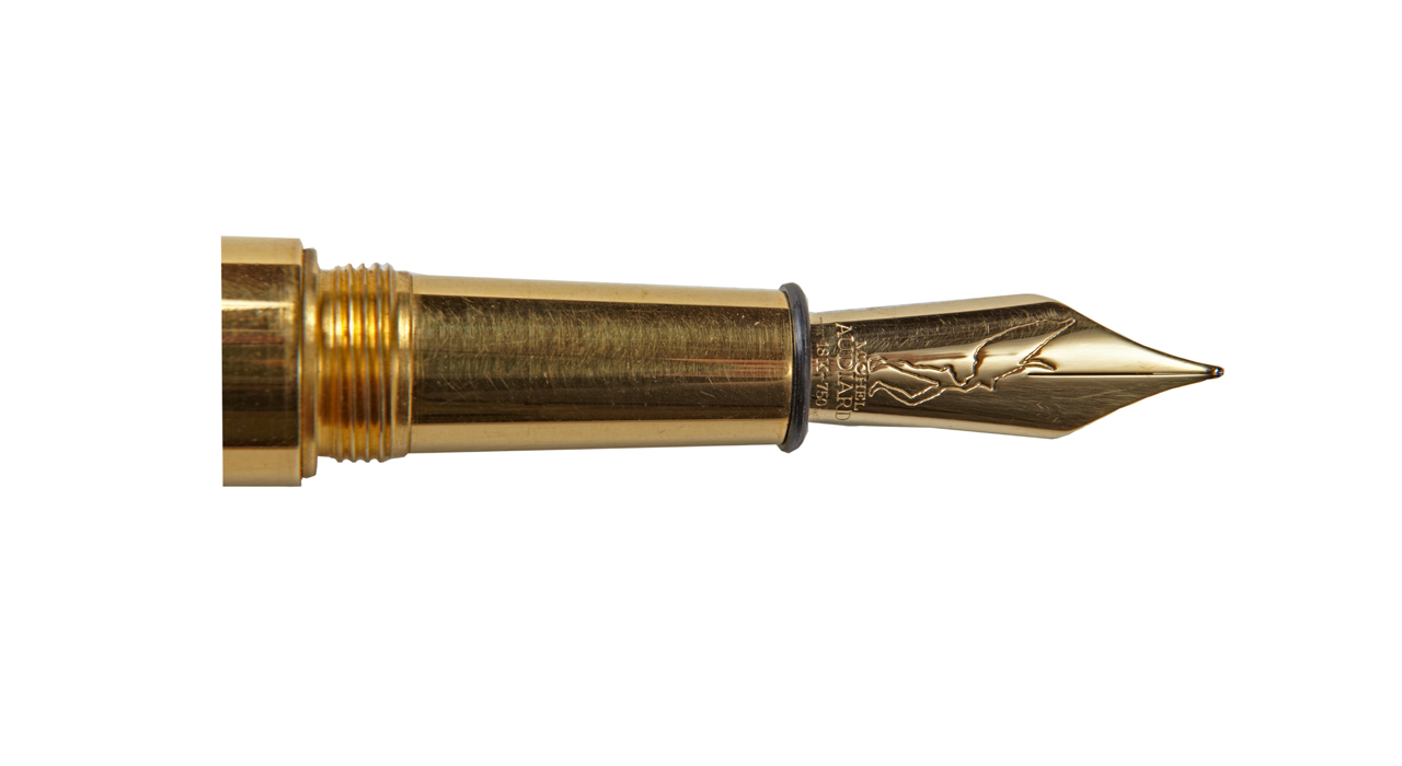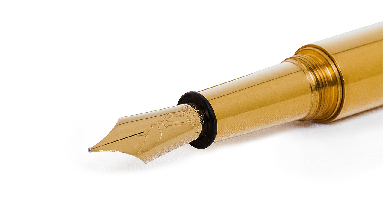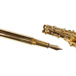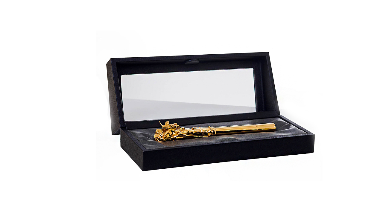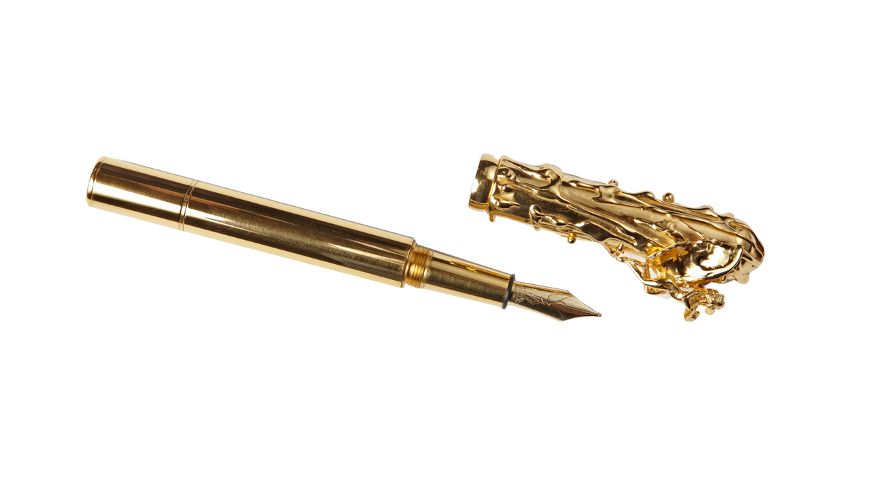 Перо ручки изготовлено из желтого металла и имеет гравировку с изображением женского силуэта-эльфа.
