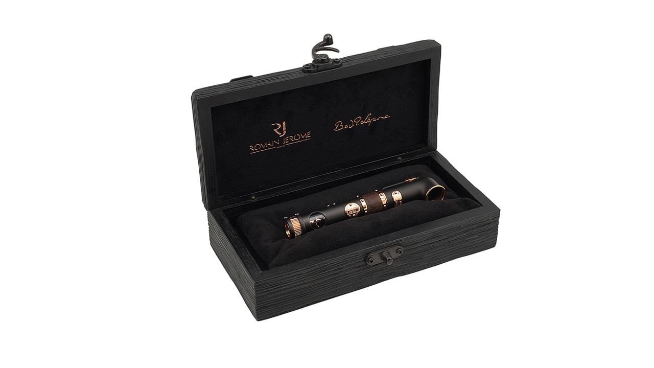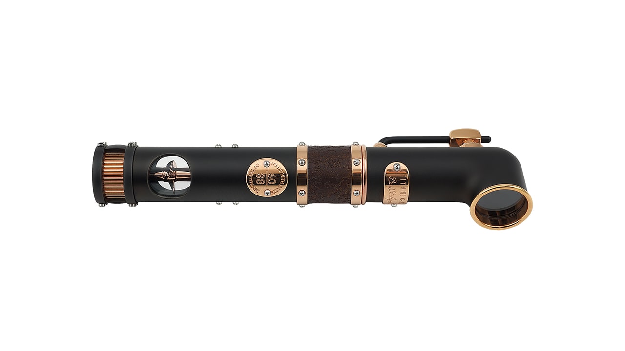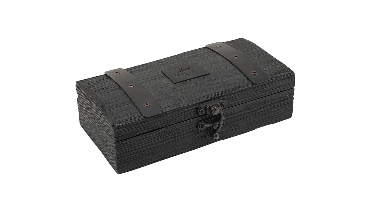 Дизайн этой модели, где письменный прибор возведен в ранг произведения искусства, вдохновлен шедевром инженерной мысли – кораблем «Титаник». Ручка в форме дымовой трубы легендарного корабля дополняется колпачком, состоящим из 10 металлических деталей с креплением в виде лестничных перил. Через сапфировое стекло можно увидеть перо, выполненное из золота 18 карат, с выгравированным на нем изображением «Титаника». Корпус изделия украшен кольцом из окисленного металла, представляющего собой сплав ржавой стали с обломков «Титаника» и стали с судостроительной верфи Harland & Wolf, где около века назад было построено это самое известное судно в истории. В корпусе ручки, состоящем из 30 металлических деталей, выполнены отверстия в форме иллюминаторов и расположены: •прозрачный резервуар, позволяющий видеть уровень чернил и поршень •винт, напоминающий вспомогательный гребной винт «Титаника» На поверхность корпуса нанесён высокотехнологичный матовый лак «PVD» с высокой степенью стойкости. Декоративные кольца и накладки выполнены из золота 18 карат. Одна из главных отличительных особенностей данной ручки является декоративное кольцо, изготовленное из сплава ржавой стали с обшивки корабля и стали с судостроительной верфи Harland & Wolf, где около 100 лет назад был построен легендарный непотопляемый «Титаник». Поверхность колец искусственно состарена и имеет благородную патину. На нижней части корпуса размещена миниатюрная копия рулевой рубки судна, защищенная сапфировым стеклом. 46 стальных и бриллиантовых винтов, напоминающих заклепки с обшивки судна, гармонично дополняют и завершают дизайн изделия.
