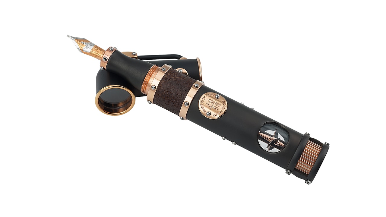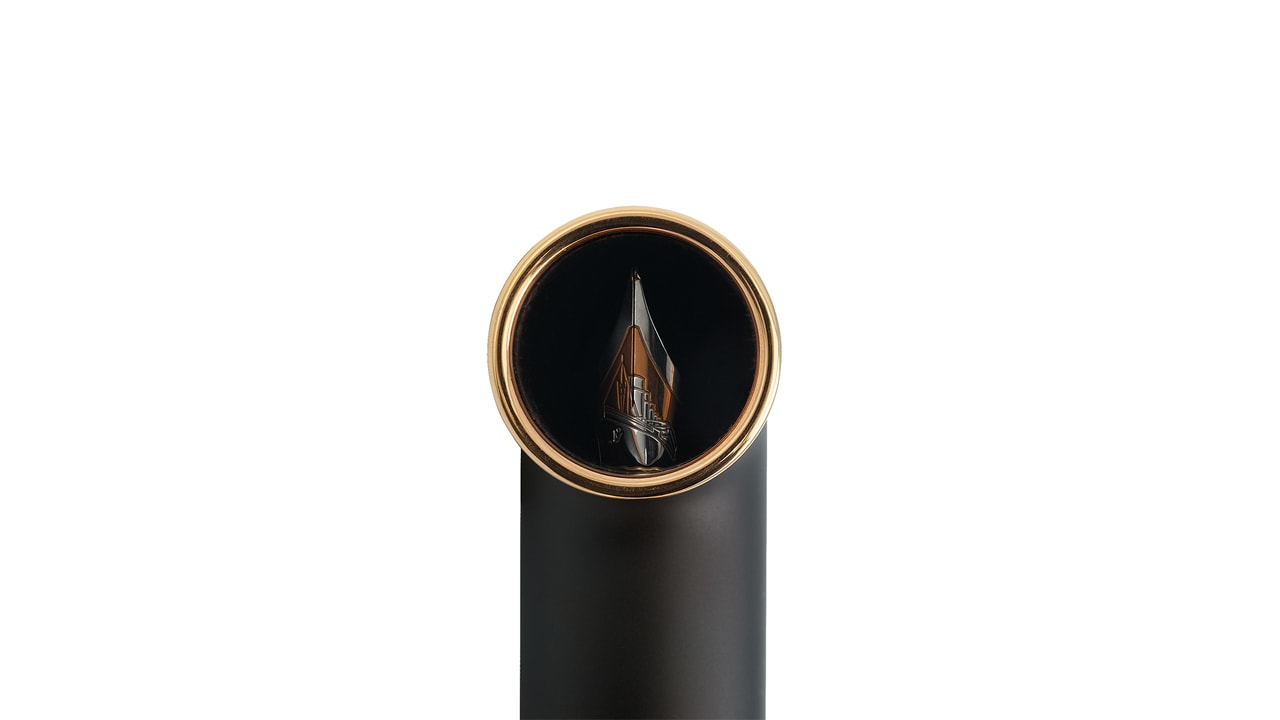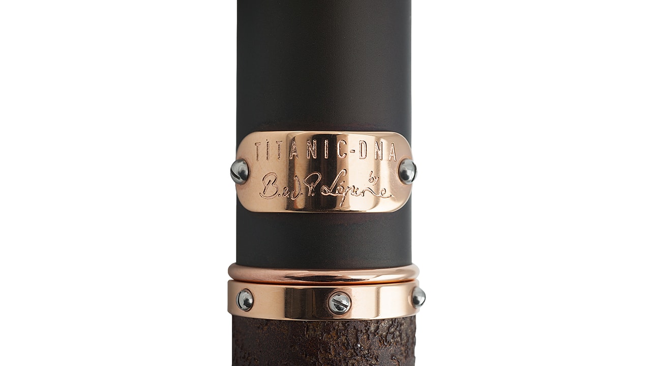 Дизайн этой модели, где письменный прибор возведен в ранг произведения искусства, вдохновлен шедевром инженерной мысли – кораблем «Титаник». Ручка в форме дымовой трубы легендарного корабля дополняется колпачком, состоящим из 10 металлических деталей с креплением в виде лестничных перил. Через сапфировое стекло можно увидеть перо, выполненное из золота 18 карат, с выгравированным на нем изображением «Титаника». Корпус изделия украшен кольцом из окисленного металла, представляющего собой сплав ржавой стали с обломков «Титаника» и стали с судостроительной верфи Harland & Wolf, где около века назад было построено это самое известное судно в истории.