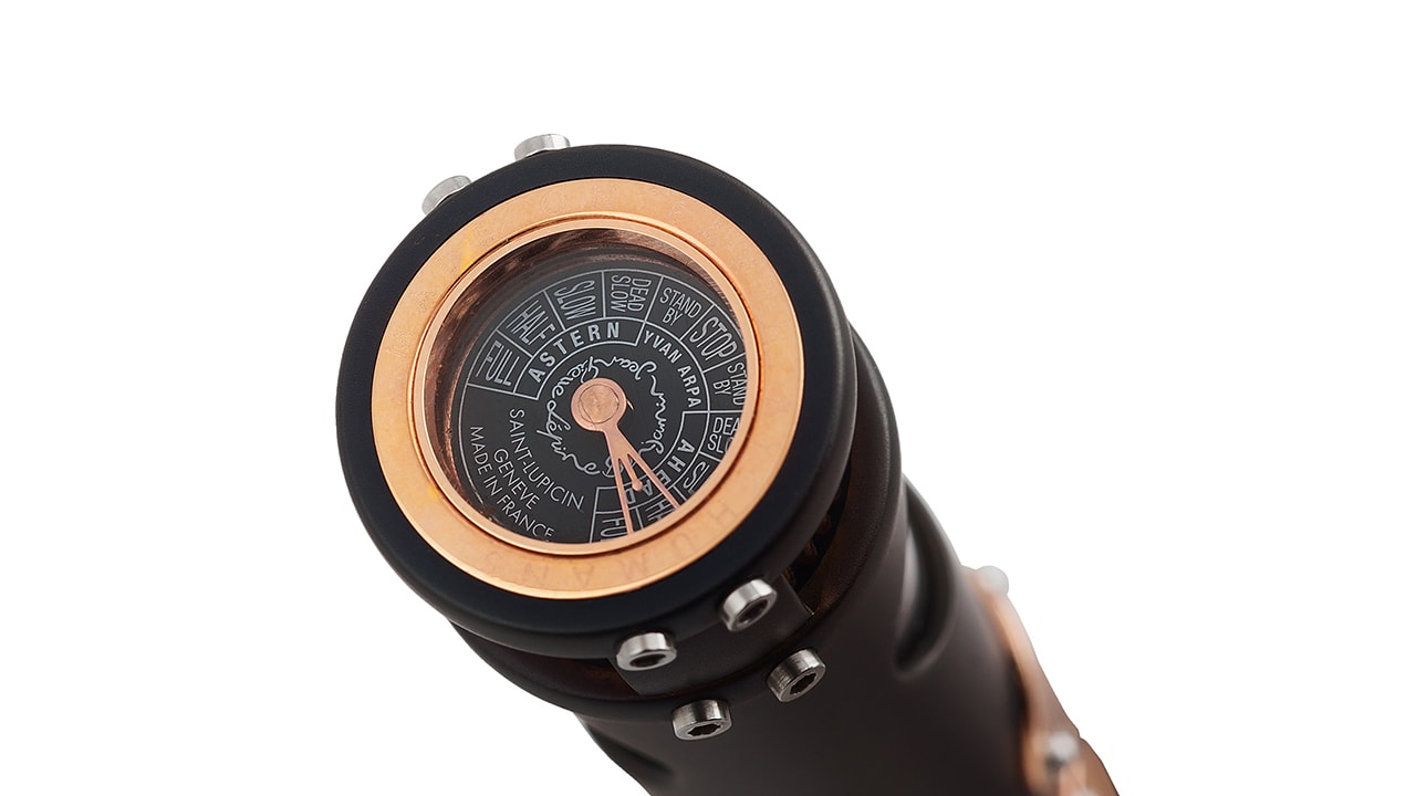На нижней части корпуса размещена миниатюрная копия рулевой рубки судна, защищенная сапфировым стеклом. 46 стальных и бриллиантовых винтов, напоминающих заклепки с обшивки судна, гармонично дополняют и завершают дизайн изделия.