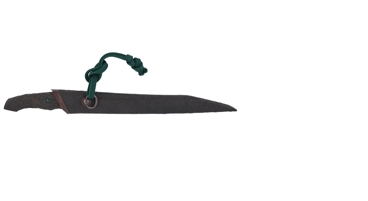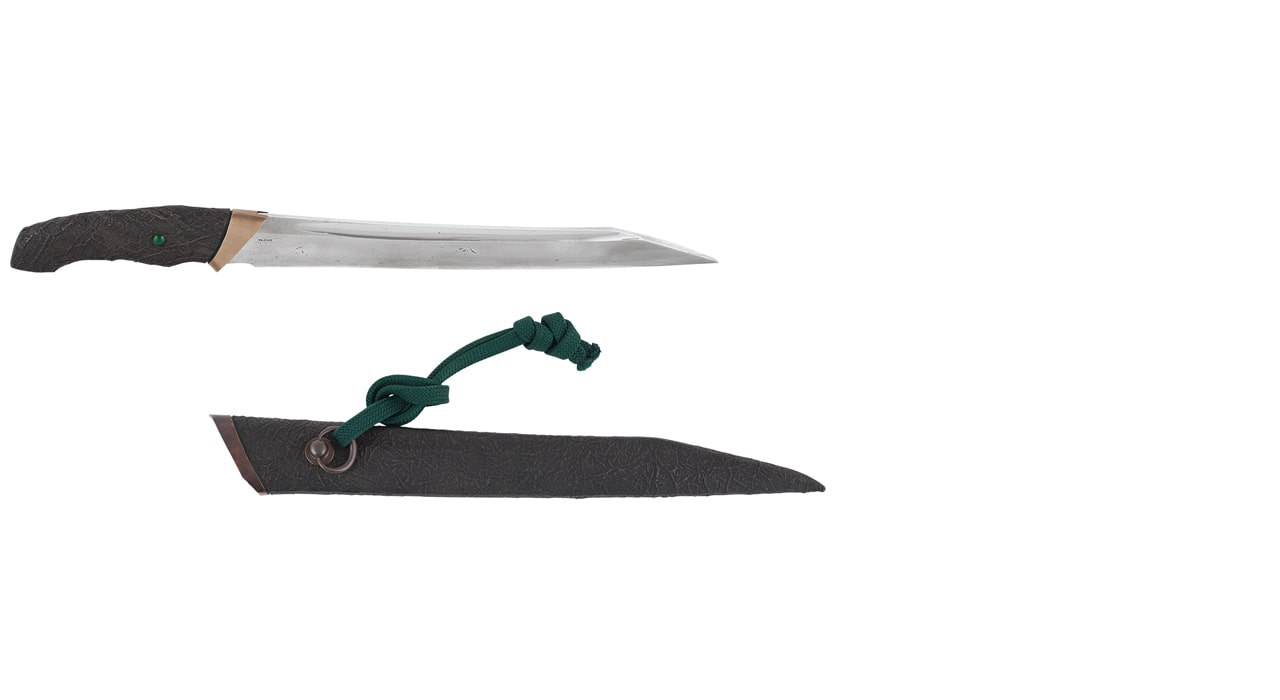 Авторский коллекционный нож выполнен мастером ножевого дела Нибе Юкио в единичном экземпляре. Длина клинка и его изгиб соответствуют танто . Этот кинжал был вспомогательным оружием самурая, также танто служил и ритуальным кинжалом. Клинок выполнен из клинка антикварной катаны (тамахаганэ). Сталь тамахаганэ – уникальный сплав ручного производства по традиционной японской технологии, с неоднородным содержанием углерода. Благодаря своему составу имеет различную степень твёрдости. Вследствие неоднородности структуры имеет неповторимый рисунок и великолепно поглощает удары подобно мечу самураев. Рукоять ножа и ножны выполнены из дерева магнолии, символа чистоты.