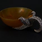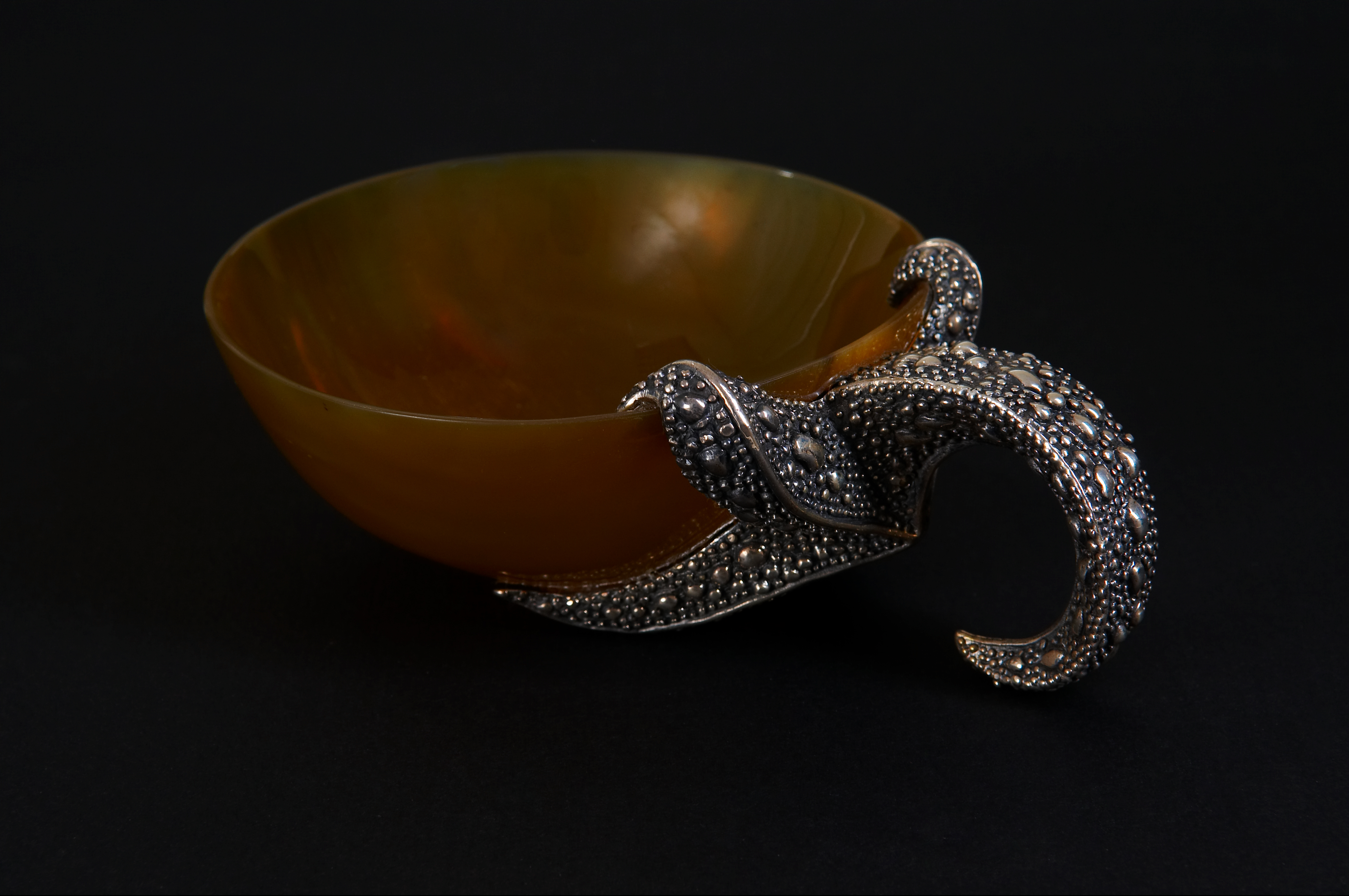 блюда — половинку фантазийного кокоса. Мастер удивительно реалистично изобразил фактуру кожи морского обитателя, создав «бугристую» поверхность, а также пластичность формы этого животного.