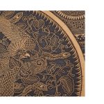Блюдо отличается тонкой работой, изящным орнаментальным рисунком и сложной композицией с богатой палитрой использованных металлов. На зеркале блюда в круглом поле изображён феникс (птица Хоо) в обрамлении пышных растений. Борта оформлены геометрическим орнаментом в полях, напоминающих лепестки лотоса и листья, по краю чуть фестончатого борта композицию обрамляет полоса растительного орнамента (виноградная лоза).
