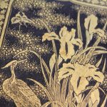 Мастерская Комаи достигла своего расцвета в 1877 году, создавая произведения декоративно-прикладного искусства в основном из металла, инкрустированные золотом и серебром в технике нуномэ-дзоган (дамаскирование). Блюдо выполнено в технике инкрустации нуномэ-дзоган. Эта техника, происходящая из Китая, была распространена во многих странах Востока. В Японии она традиционно использовалась в декоре оправы мечей – цуба и косираэ и в создании небольших предметов, таких как шкатулки или металлические гребни и шпильки для волос. В качестве базового металла используются сплавы сибуити и сякудо, а также медь и серебряные сплавы. Инкрустация часто выполняется золотом, серебром или сплавами с высоким содержанием благородных металлов.