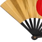 Боевой веер. Использовался как сигнальный знак во время военных действий, чем и обусловлена его яркая окраска. На золотом фоне помещен круг — красное солнце («ниссё-ки») — символ Японии. Данный предмет не применялся в боевых действиях, сделан в 1975 году по аналогии с аутентичными боевыми веерами. Мастер — Сигэхару (XVIII-е поколение). Веер оги – боевая принадлежность японского военачальника, украшался гербом, часто изображением солнечного диска с одной стороны , и лунного — с другой. Каждый воин шёл в бой с изображением герба своего клана.