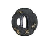 Неподписанная цуба формы мокко, выкованная из традиционного сплава сибуити (медь с серебром в пропорции 4:1) с ободом и одним отверстием кодзука-хицу .