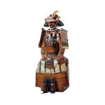 На отворотах фукигаэси шлема изображен фамильный герб клана одной из ветвей клана Мори — «мару-ни хитоцу я-банэ» , что означает «оперение стрелы внутри круга». Дом Мори — один из могущественнейших самурайских домов времен Сэнгоку дзидай. Князьям Мори принадлежало несколько провинций в южной части о. Хонсю. Прибывшие в XVI в. В Японию португальцы называли князей Мори «королями Японии». Доспехи имеют статус «важные исторические материалы» от «Ассоциации Исследований и Сохранения японских шлемов и оружия», зарегистрированы в реестре Ассоциации под номером 396. Дом Мори был основан потомками семьи Уда Гэндзи, то есть потомками японского императора Уда-тэнно ; род Мори ответвился в период Муромати от княжеского рода Оэ. Могущество род Мори обрел в XV веке при князе Мори Мотонари, правителе провинции Аки (современная префектура Хиросима). Мотонари ушёл из жизни в возрасте 74 лет в замке Корияма, став одним из величайших военачальников середины 16 века. Под его руководством влияние клана Мори расширилось от нескольких районов в Аки до десяти из одиннадцати провинций Тюгоку. Мотонари был также известен в своё время, как великий мастер военной стратегии и тактики. За пределами Японии Мотонари вспоминают за легенду «Урок о трёх стрелах». В этой притче Мотонари предлагает каждому из трёх своих сыновей сломать по одной стреле. Затем он даёт им три связанные стрелы и указывает, что одна стрела может быть сломана легко, но не три, объединённые как одна. Тремя сыновьями были Такамото, Мотохару и Такакагэ. «Одна линия, три звезды» — этот символ клана Мори был унаследован от основателя семьи Оэ Хиромото. В дополнение к тому, что Мотонари был талантливым генералом, он был также выдающимся поэтом и покровителем искусств. Сохранившиеся письма, написанные его внуком Мори Тэрумото, описывают Мотонари как строгого и требовательного человека с острым взглядом. Род Мори имел несколько ответвлений со своими фамильными гербами. Доспехи доступны под заказ.