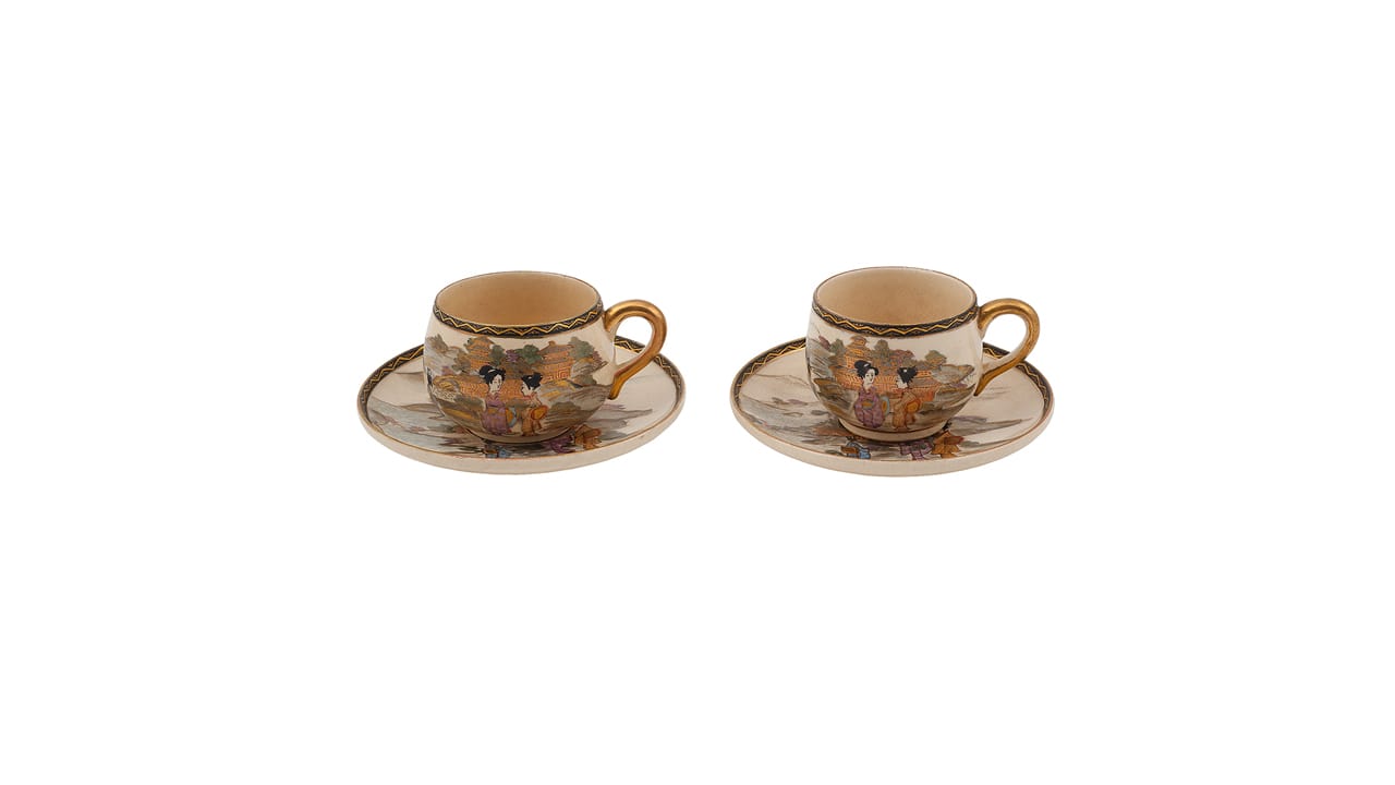 Мастер: Уэмото Досэй Мэй: Уэмото Досэй Состав сервиза: чашки — 2 шт., блюдце — 2 шт. Размеры: чашка — 4.5 х 9.5 см, блюдце — 13 см