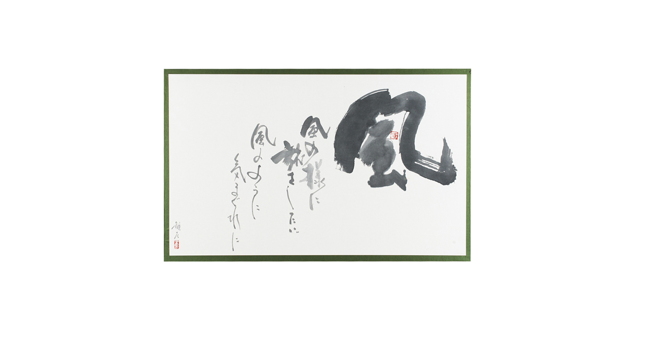 Полотно Вада «Ossu» словно изображает спокойную рябь волн, набегающих на песочный берег. Серия каллиграфических работ этого мастера представляет собой удивительный по своей символической глубине цикл.