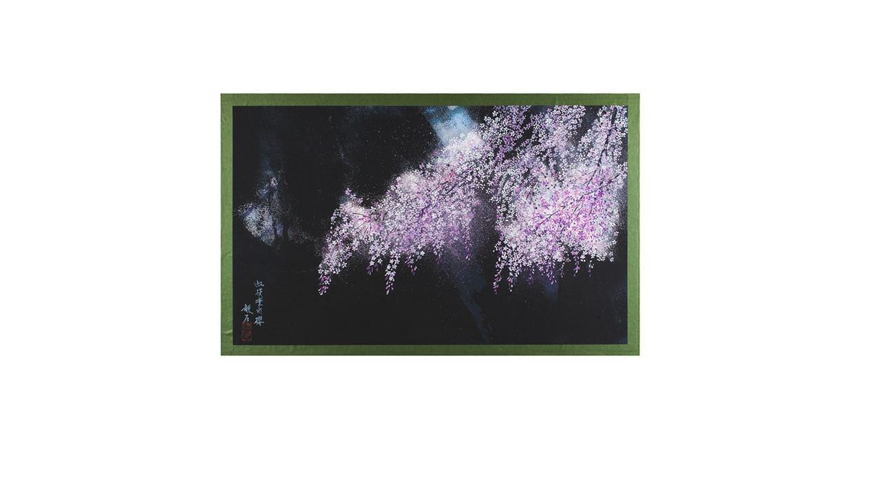 Формат листа близок к формату горизонтального свитка. В левом нижнем углу помещена подпись художника ( Кансэки ) и две традиционные квадратные печати (красной тушью).