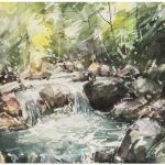 Для творческой манеры Вада характерно сочетание широкого письма фонов прозрачными лёгкими тонами и тонкая проработка деталей более плотными красками насыщенных цветов. Художнику удалось мастерски изобразить прозрачность воды, детализировав фактуру горного ручья.