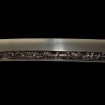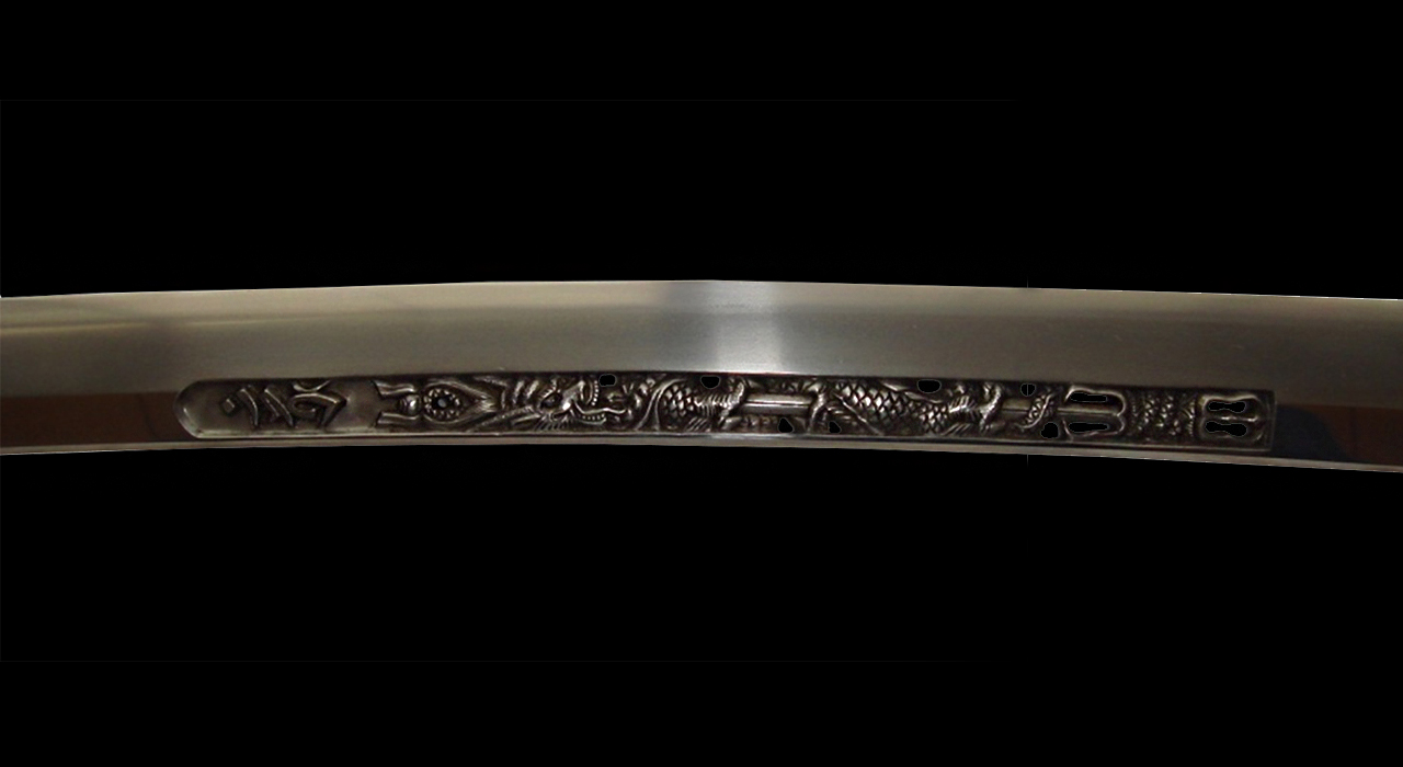 Омотэ-мэй (лицевая сторона): Кэйсинсай Наомаса изготовил это Значение гравировки на клинке: обвивающийся вокруг меча дракон
