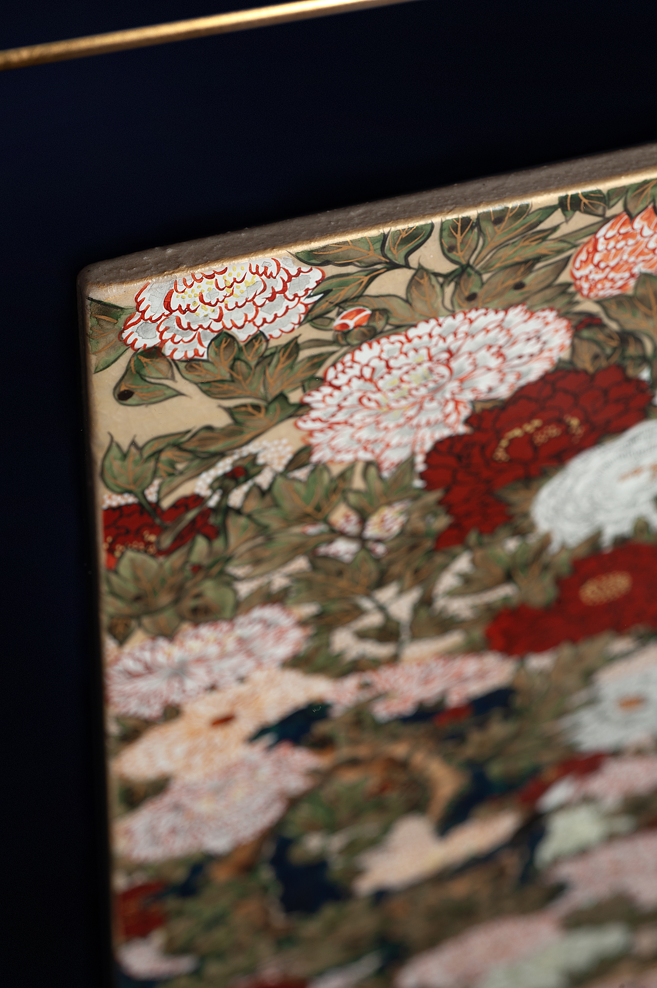 Керамическая картина «Пионы и маленькие птички»