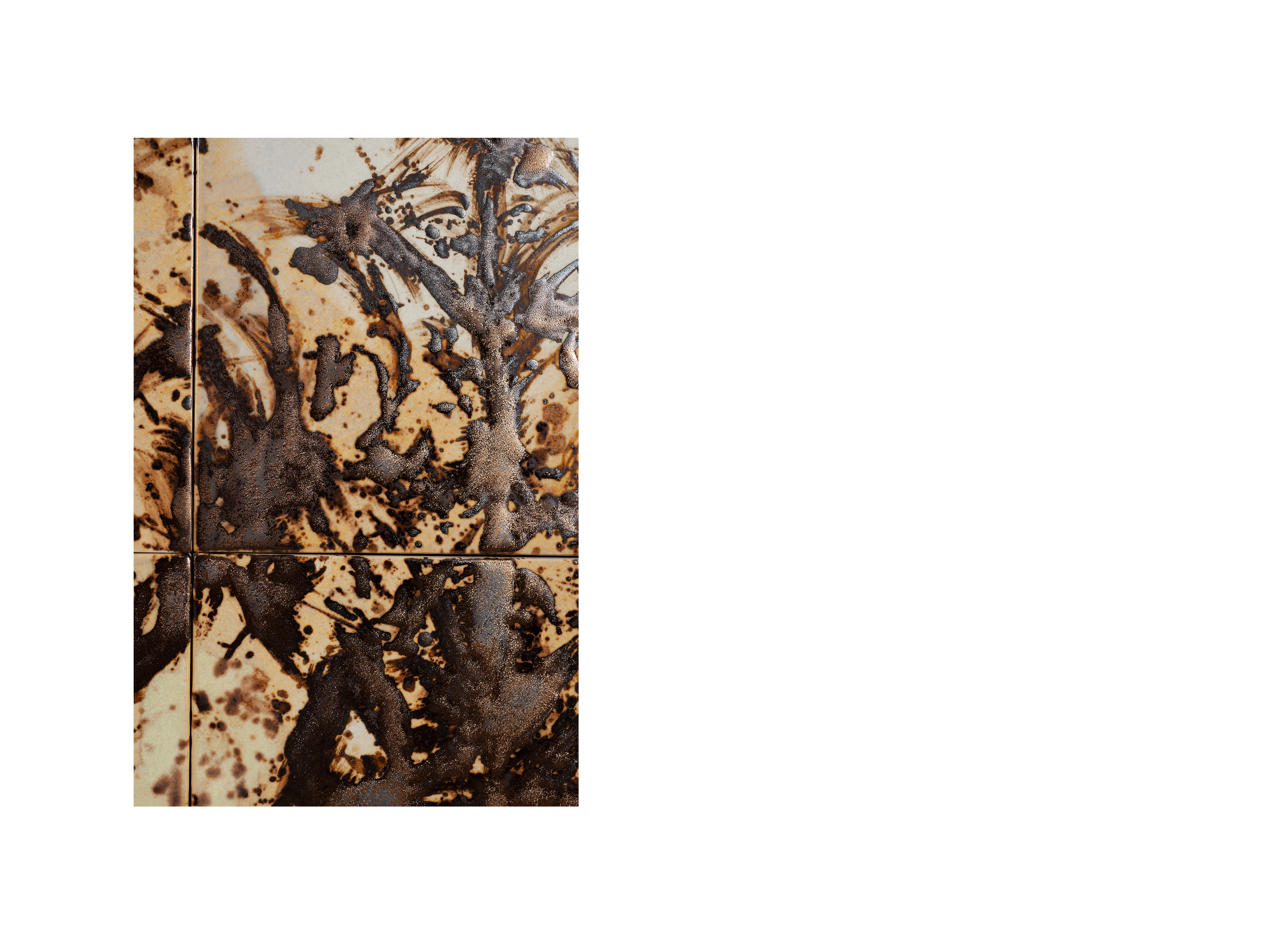 Продолжая традиции живописи тушью суми-э, художник пришел к новой форме выражения –картины, создаваемые путем росписи керамических панелей и обжига при высоких температурах.