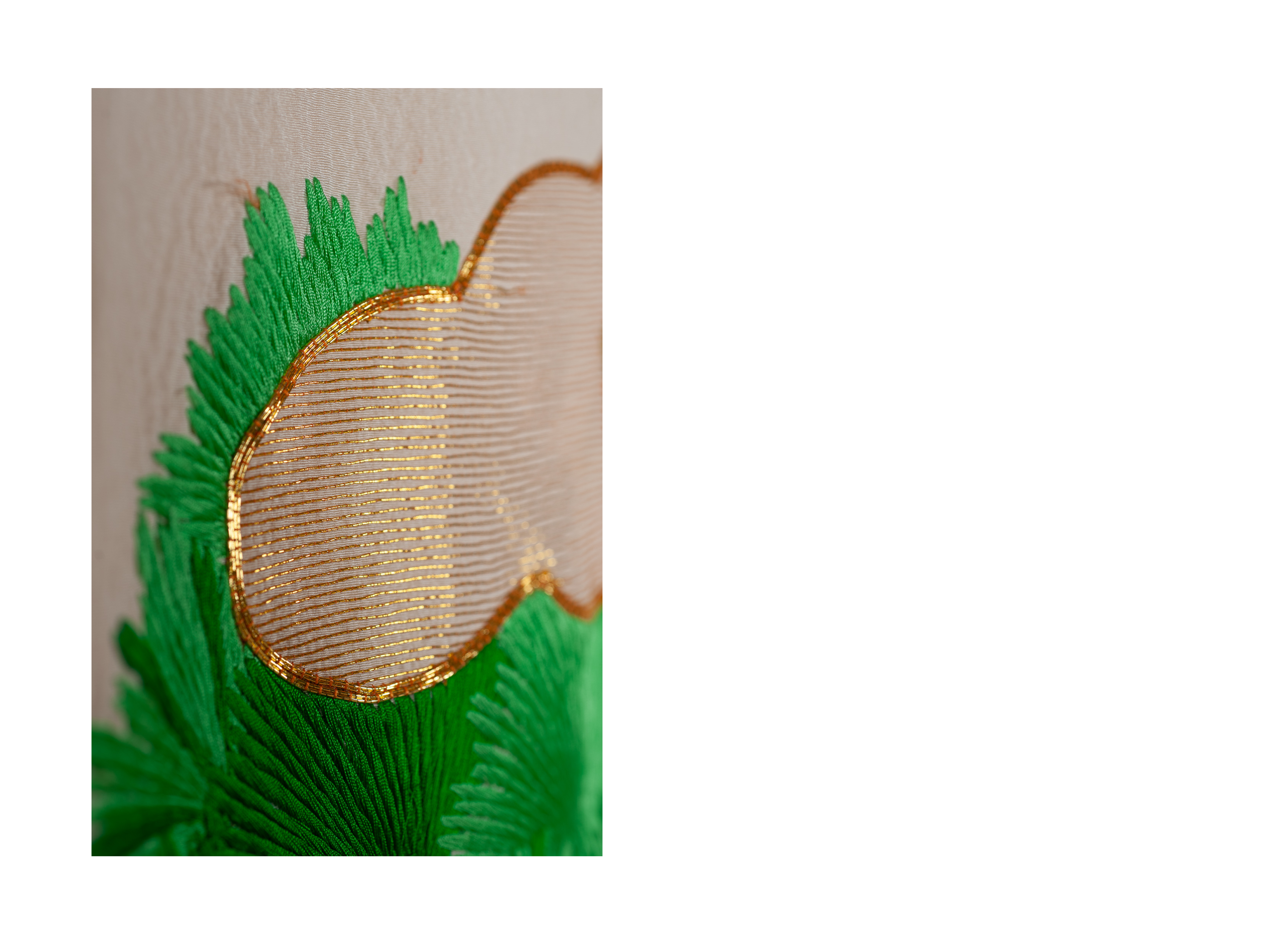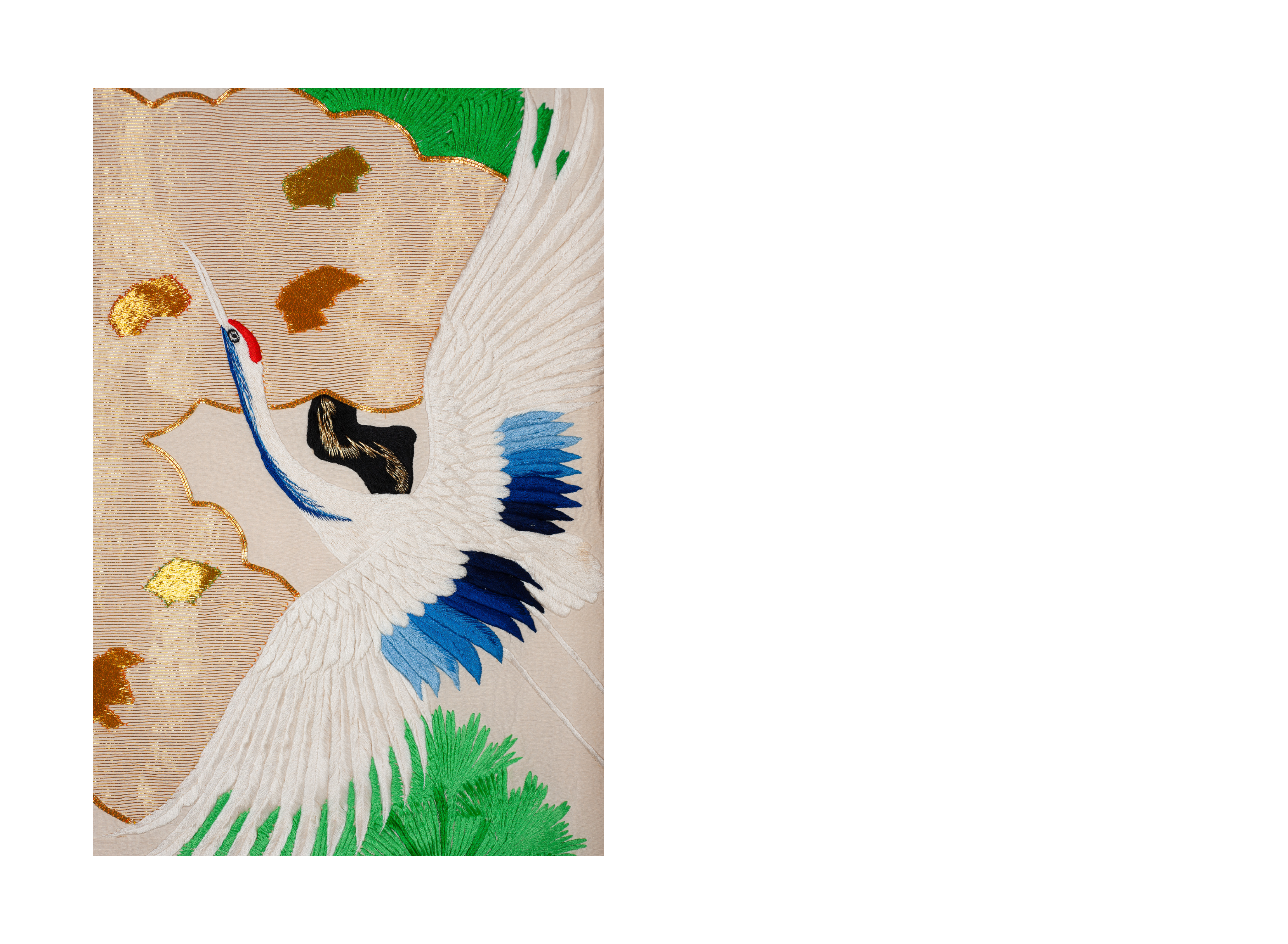 Кимоно украшает образ журавля. Журавль — одна из самых благословенных птиц в Японии, символ долголетия, надежды, плодовитости, мира и семейного счастья, воплощение таких нравственных качеств, как мудрость, справедливость, благородство, интеллигентность, аристократизм.