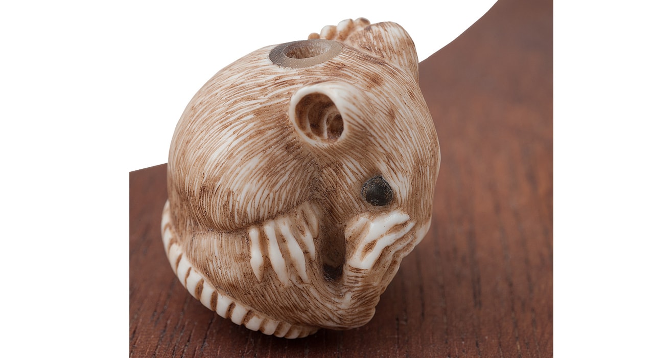 а также их мордочки детально трактованы и тонированы. Стилистика резьбы напоминает классическую резьбу нэцкэ.