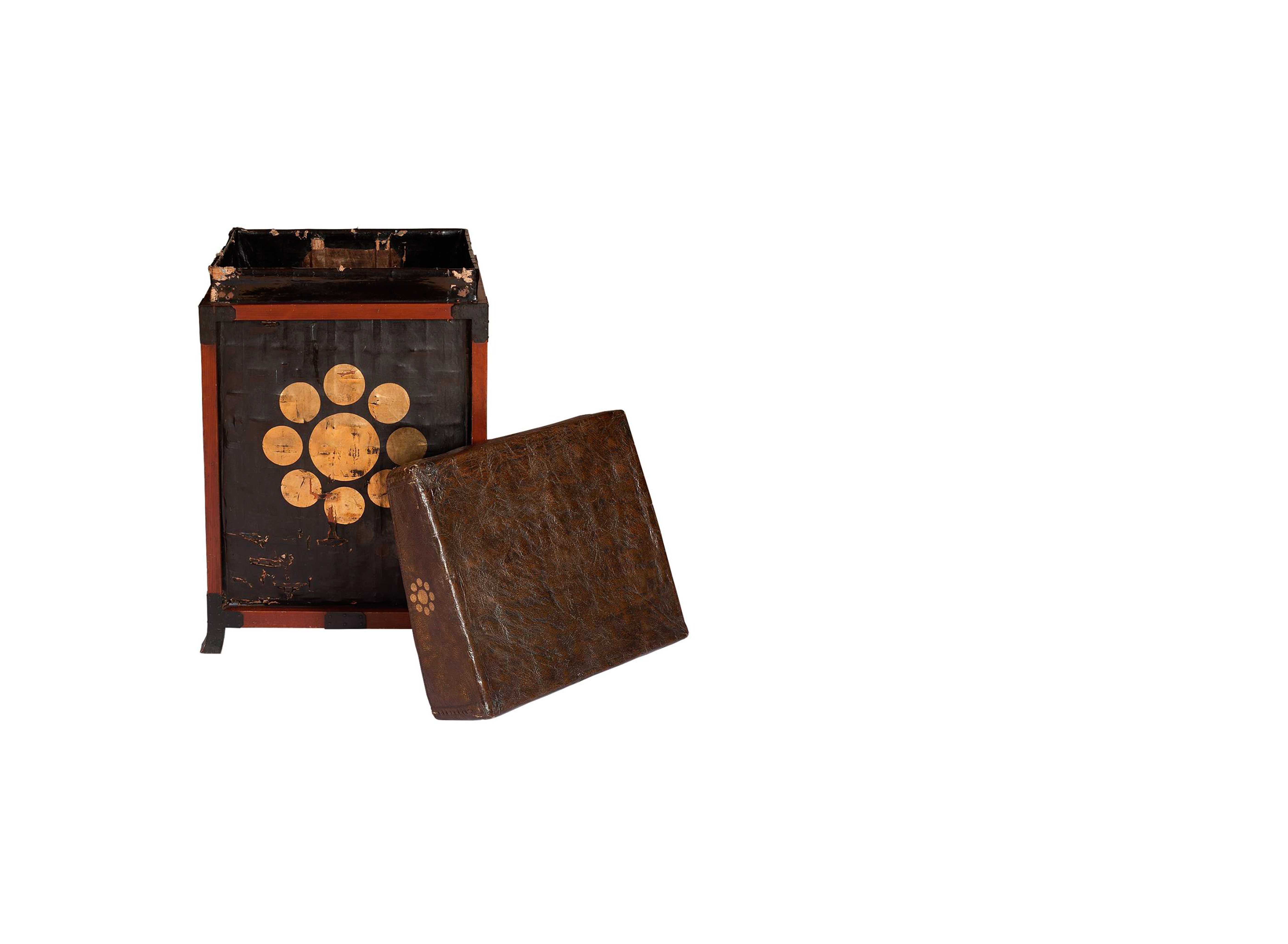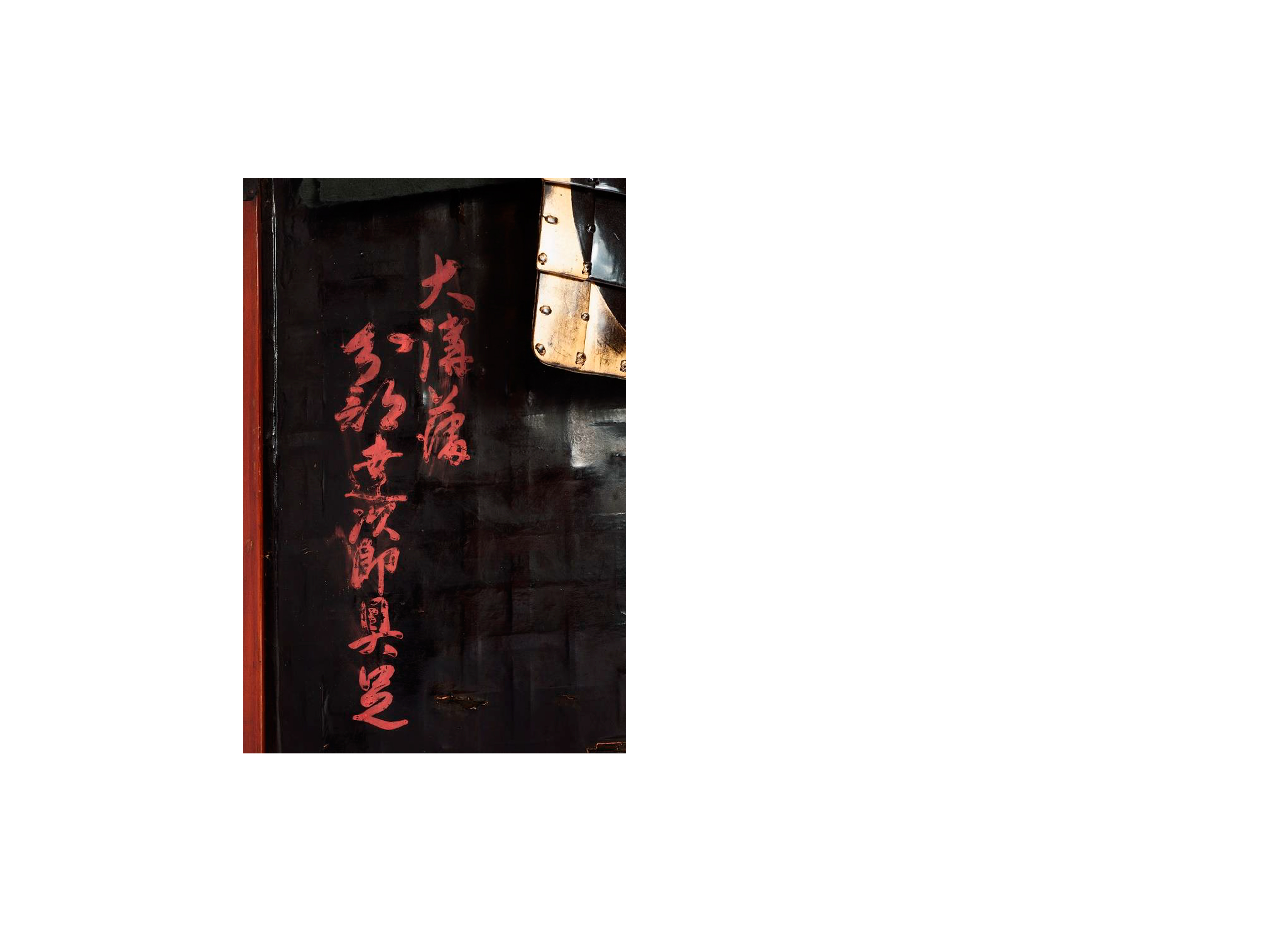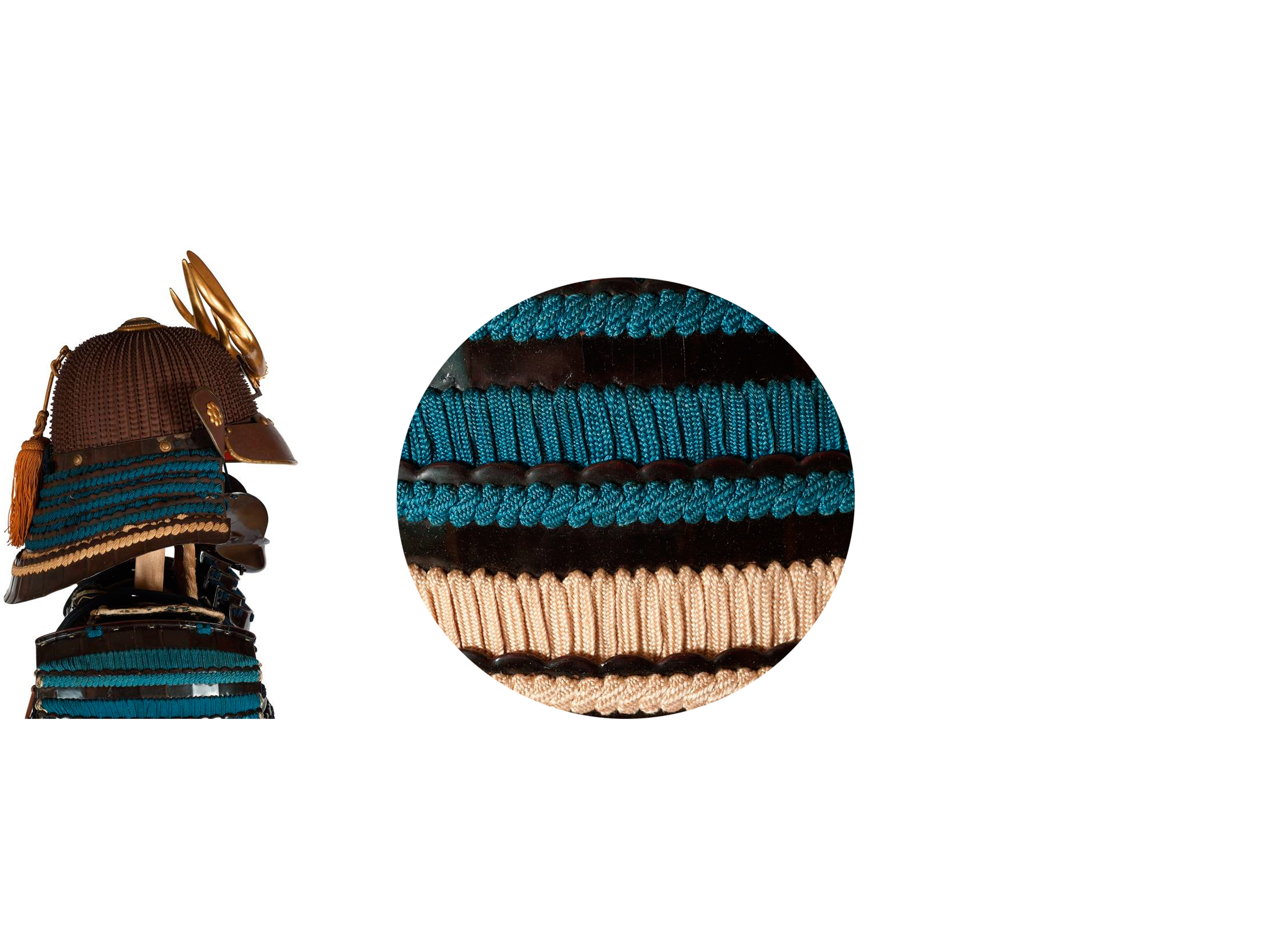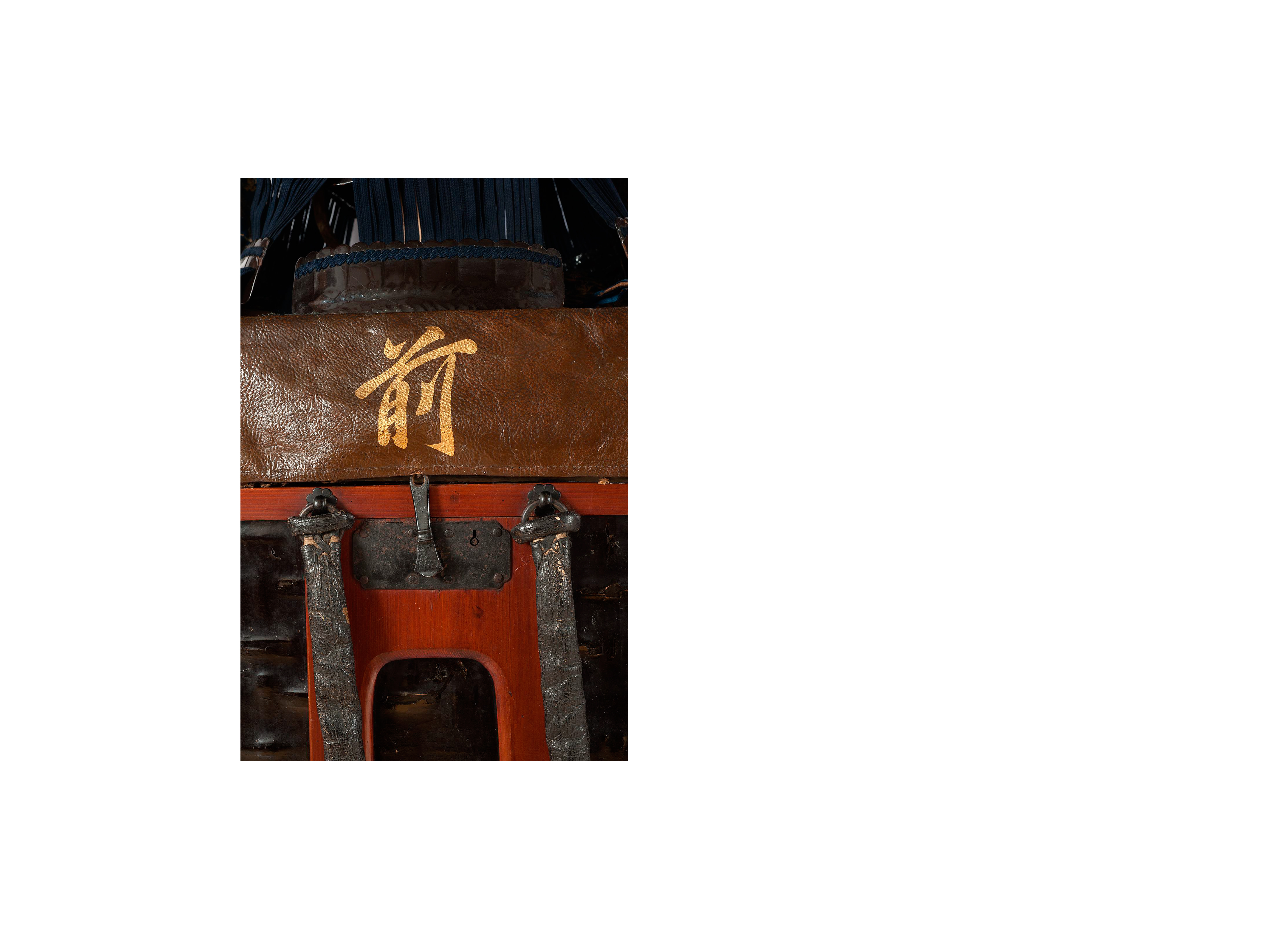Из надписи красной тушью на коробе для этого доспеха, которая гласит: «Доспех Вакэбэ Дзэндзиро из княжества Оомидзо», можно заключить, что этот доспех был собственностью Вакэбэ Мицудзанэ. Дзэндзиро – это его детское имя. Вакэбэ Мицудзанэ (1756-1808) был восьмым князем княжества Оомидзо в провинции Оми. Княжество состояло из уездов Ясу и Такасима и давало годовой доход в 20 тысяч коку риса.