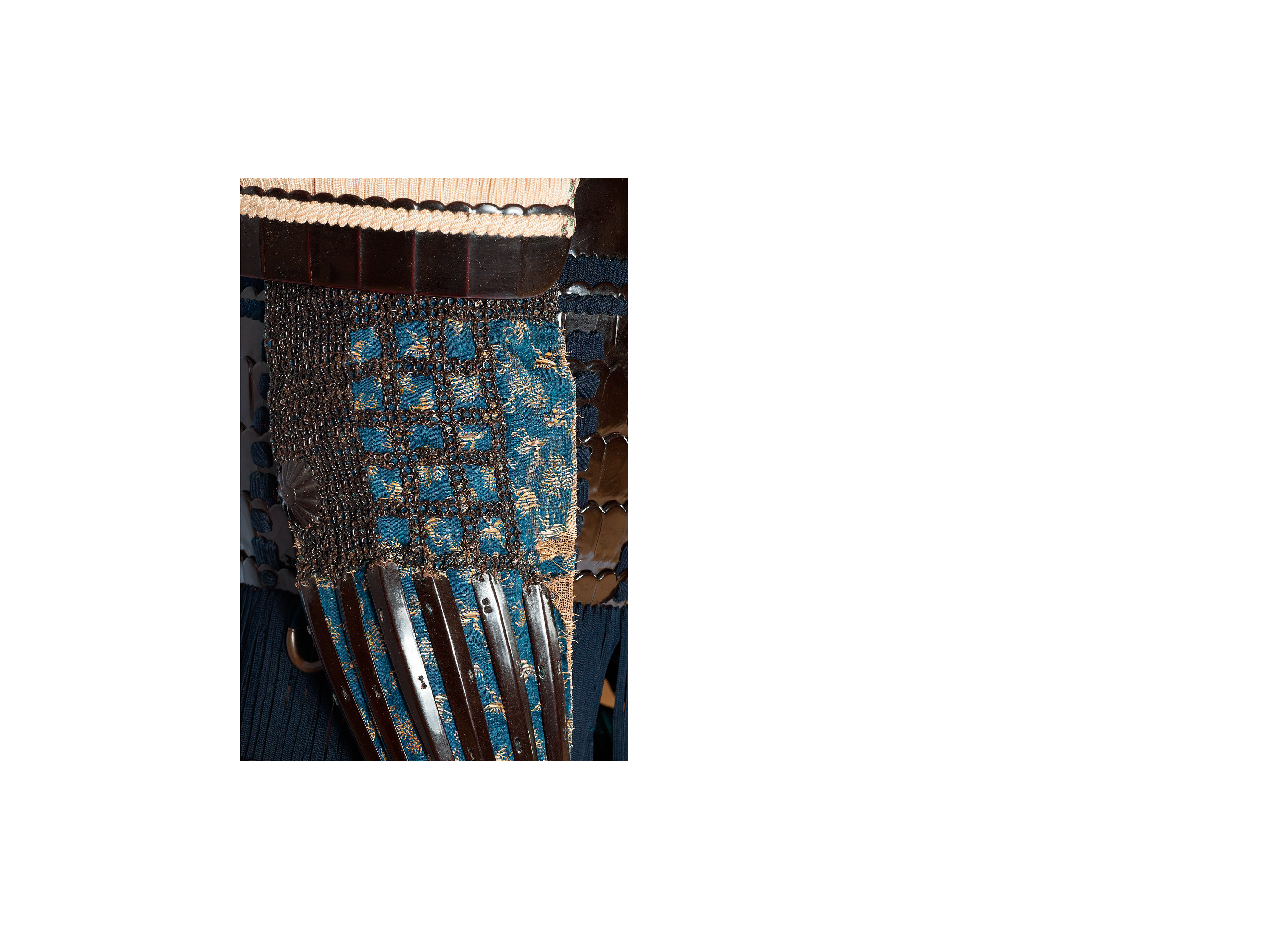 Есть запись о том, что уже после смерти Мицудзанэ, в 1809 году, был проведен ремонт набедренников-хаидатэ, а также внутри короба есть надпись, сообщающая о том, что доспех надевали во время прибытия американской миссии коммодора Перри в 1853 году. Судя по всему, доспех использовал одиннадцатый глава княжества, Вакэбэ Мицусада (1816-1870). Шлем состоит из 62 пластин, окрашен «под ржавчину», относится к типу кобоси (с пупырышками). Подпись не удается установить. Короб сделан в виде переносной бамбуковой корзины, есть командный жезл с отрезками бумаги (сайхай), набедренная повязка из темно-синей конопляной ткани, большой и маленький отрез ткани для завертывания фуросики синего цвета.