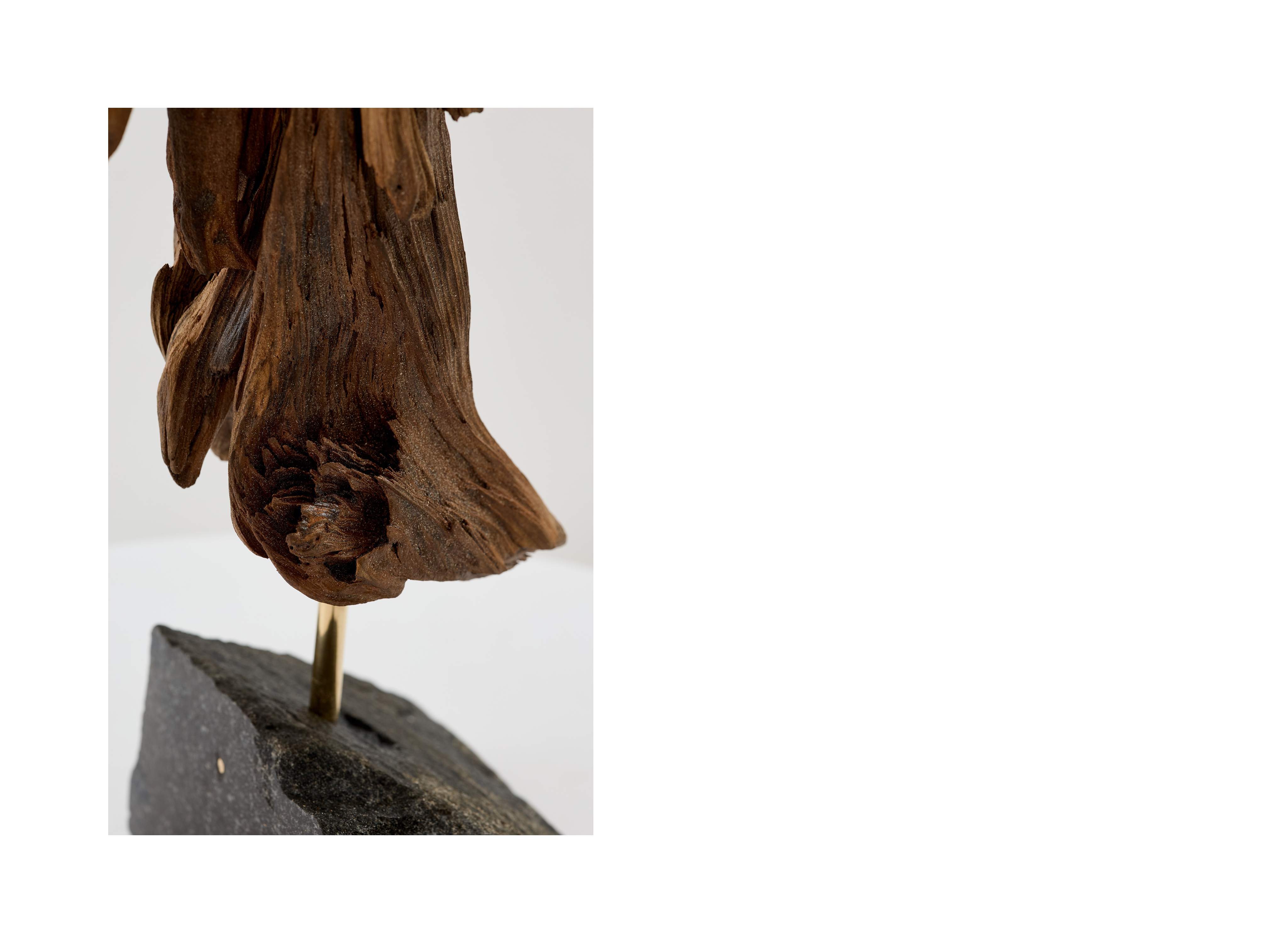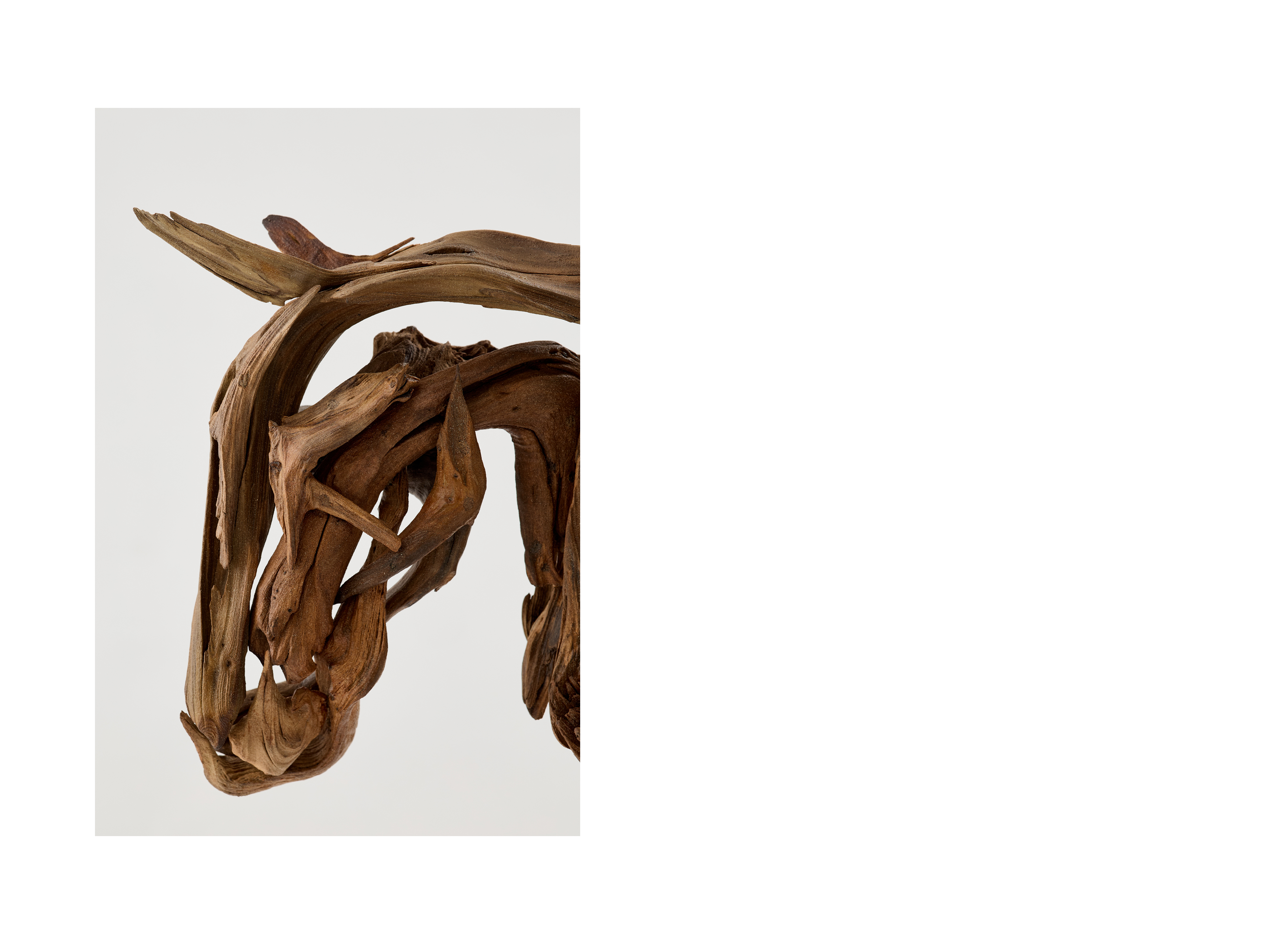 Образ лошади представлен на гранитном основании и легко считывается с разных сторон, благодаря деталям, соединенным в определенной последовательности. Всего для создания было использовано четырнадцать фрагментов древесины разных размеров, идеально подобранных для данного формата. Дерево-плавун, известное также как плавник, в переводе с английского «driftwood» обозначает выброшенные на берег части деревьев. Находясь под воздействием воды древесина становится более прочной, приобретает мягкую обтекаемую форму.