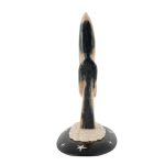 Фигурка на подставке представляет собой аллегорическую композицию. Фигурка в виде старца — это месяц. Подставка — звездное небо. Звезды выполнены в технике инкрустации бивнем мамонта в эбен. Месяц на облаке плывет в звездном ночном небе и сверху смотрит на землю и размышляет о вопросах бытия. Передняя часть скульптуры выполнена из центральной части бивня — она белая. На задней части фигурки затемнение — темно-зеленого цвета. Это не случайно — передняя