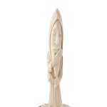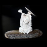Фигурка на подставке представляет собой аллегорическую композицию. Фигурка в виде старца — это месяц. Подставка — звездное небо. Звезды выполнены в технике инкрустации бивнем мамонта в эбен. Месяц на облаке плывет в звездном ночном небе и сверху смотрит на землю и размышляет о вопросах бытия. Передняя часть скульптуры выполнена из центральной части бивня — она белая. На задней части фигурки затемнение — темно-зеленого цвета. Это не случайно — передняя часть — лицо старца озарено светом, а задняя часть находится в затемнении. Затемнение — натуральная фактура рога. Синева бивня означает, что он был найден в горах, такой материал отличается повышенной прочностью. В шаманской традиции все природные явления одухотворяются, поэтому выбор композиции не случаен. Месяц представлен в виде старца на облаке в позе раздумья — держится за подбородок. Лицо старца задумчиво и спокойно.
