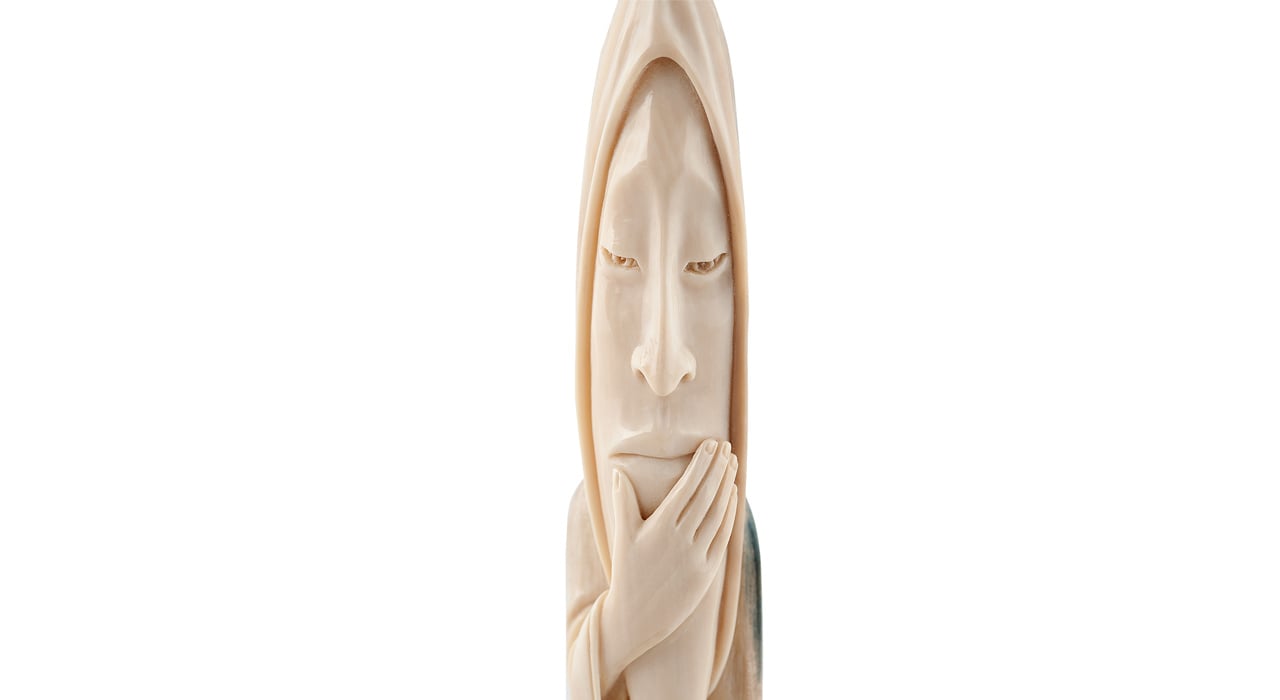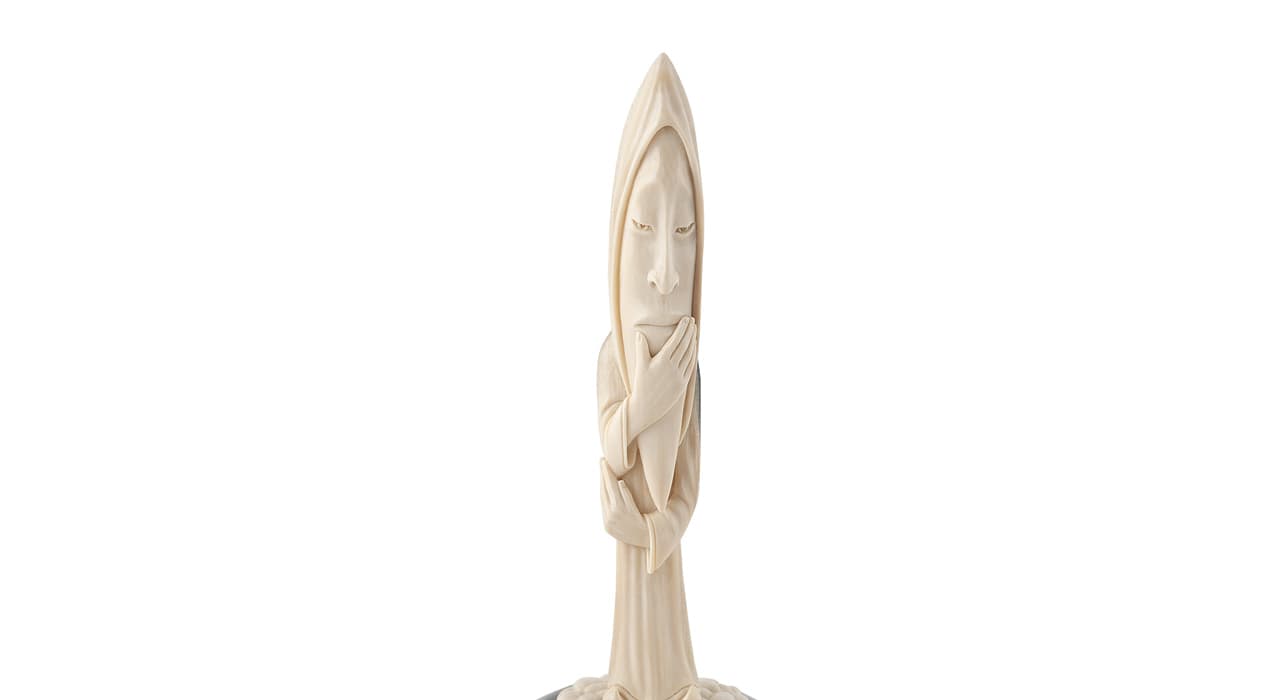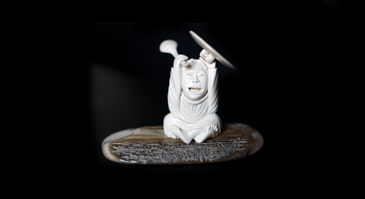 часть — лицо старца озарено светом, а задняя часть находится в затемнении. Затемнение — натуральная фактура рога. Синева бивня означает, что он был найден в горах, такой материал отличается повышенной прочностью. В шаманской традиции все природные явления одухотворяются, поэтому выбор композиции не случаен. Месяц представлен в виде старца на облаке в позе раздумья — держится за подбородок. Лицо старца задумчиво и спокойно.