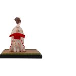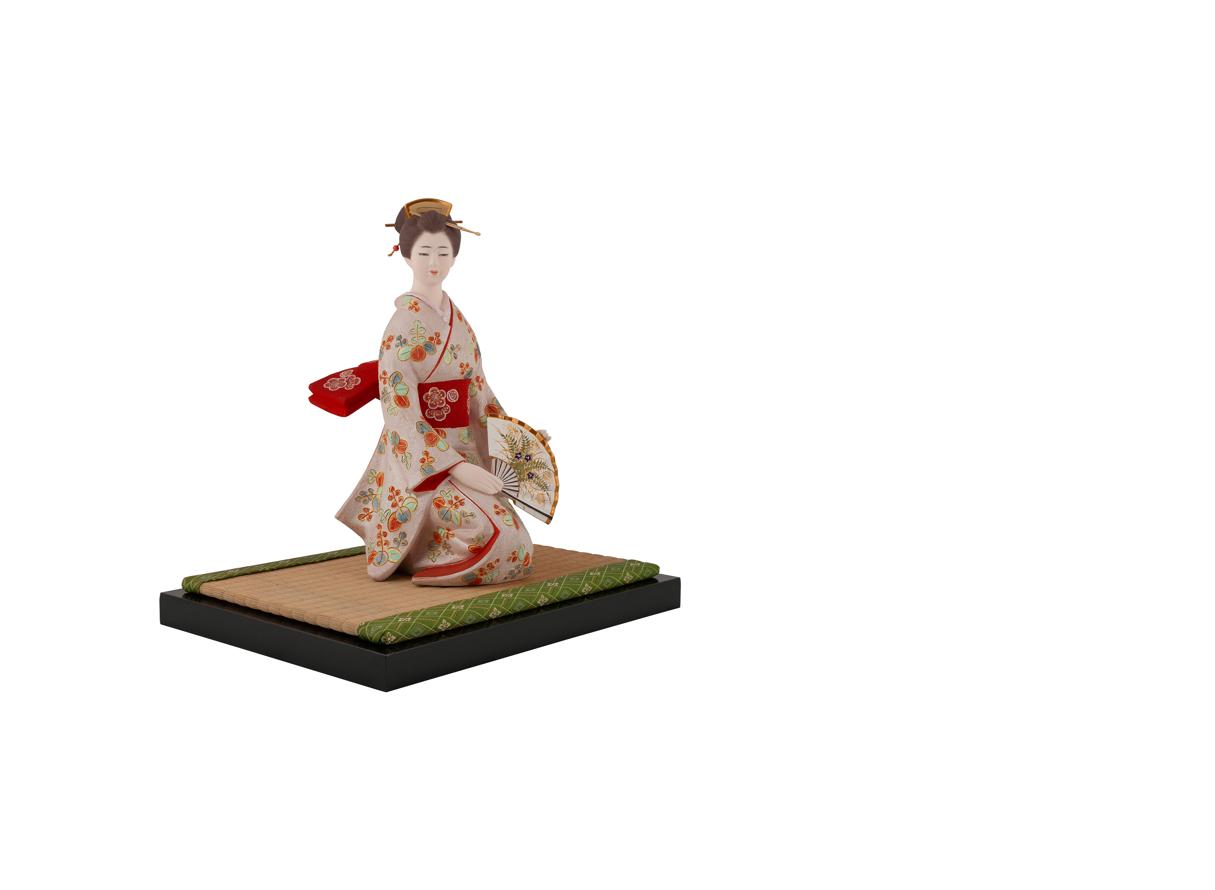 Мастер: Такэёси Куниаки Такэёси Куниаки (р. 1941) – сертифицированный мастер прикладных искусств, посвятивший всю свою жизнь созданию кукол нингё , за что был удостоен множества званий в области традиционных ремесел. Сегодня его работы пользуются большой популярностью за свою реалистичность и изящность. Хаката-нингё – традиционная японская керамическая кукла, изготавливаемая в префектуре Фукуока с начала XVII века. Тематика и образы фигурок разнообразны и зависит от предпочтений самого мастера, в основном они обращаются к сюжетам из японской мифологии, театра Кабуки и повседневной жизни. Хаката-нингё являются символом удачи, защиты и гармонии, поэтому такие куклы часто дарят на свадьбы, рождение детей и другие важные события.