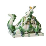 Курильница необычной формы, в виде верблюда с наездником, установлена на керамическую подставку.
