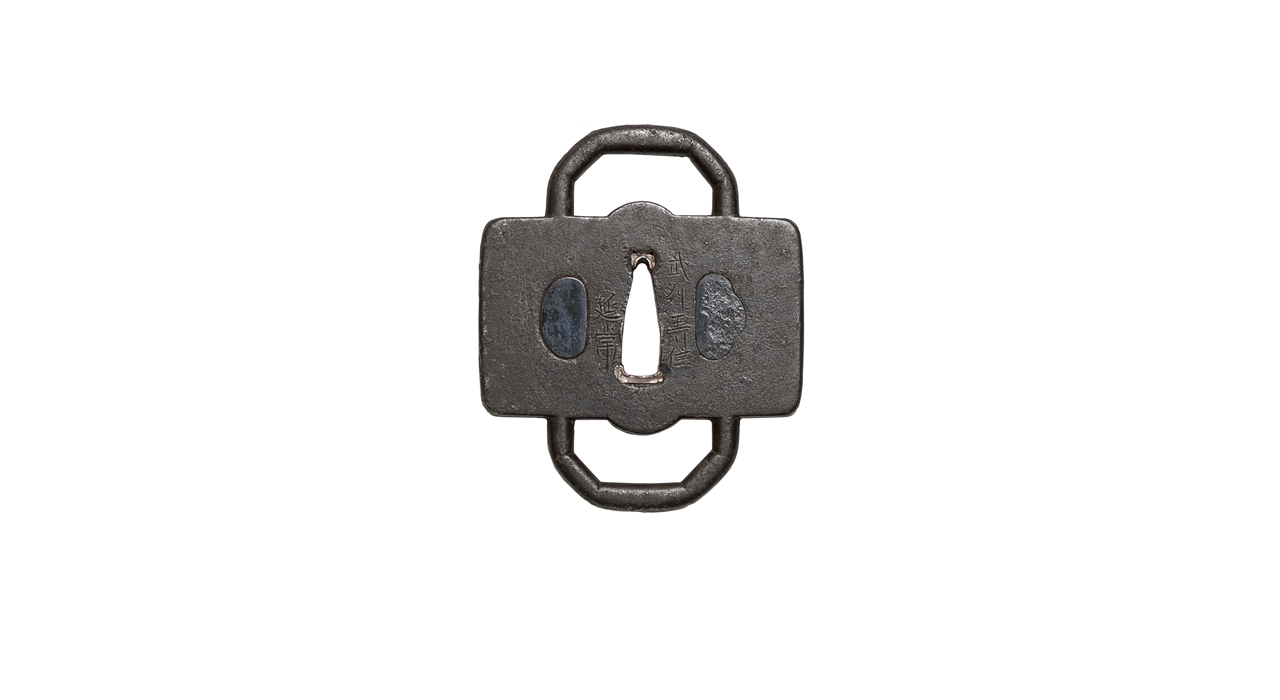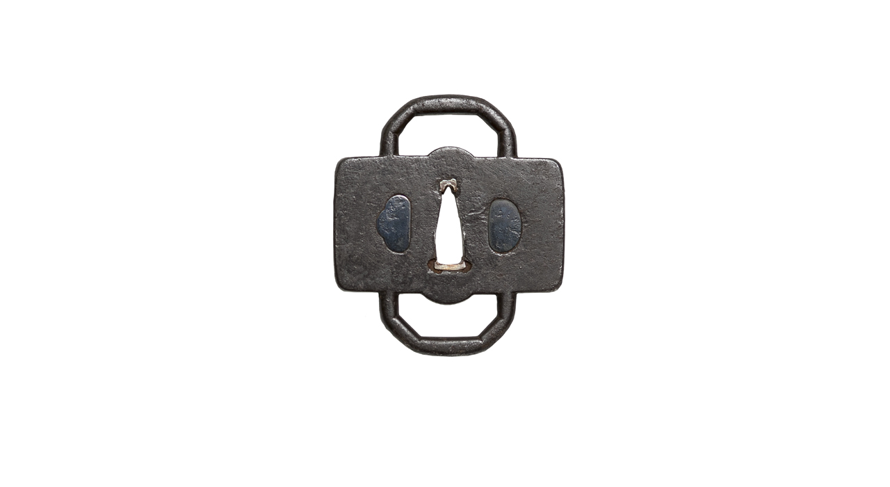 Весьма необычная массивная железная цуба «нестандартной» формы кавари-гата; по-видимому, предназначалась не для меча, а для оправы алебарды (косаря) нагината .