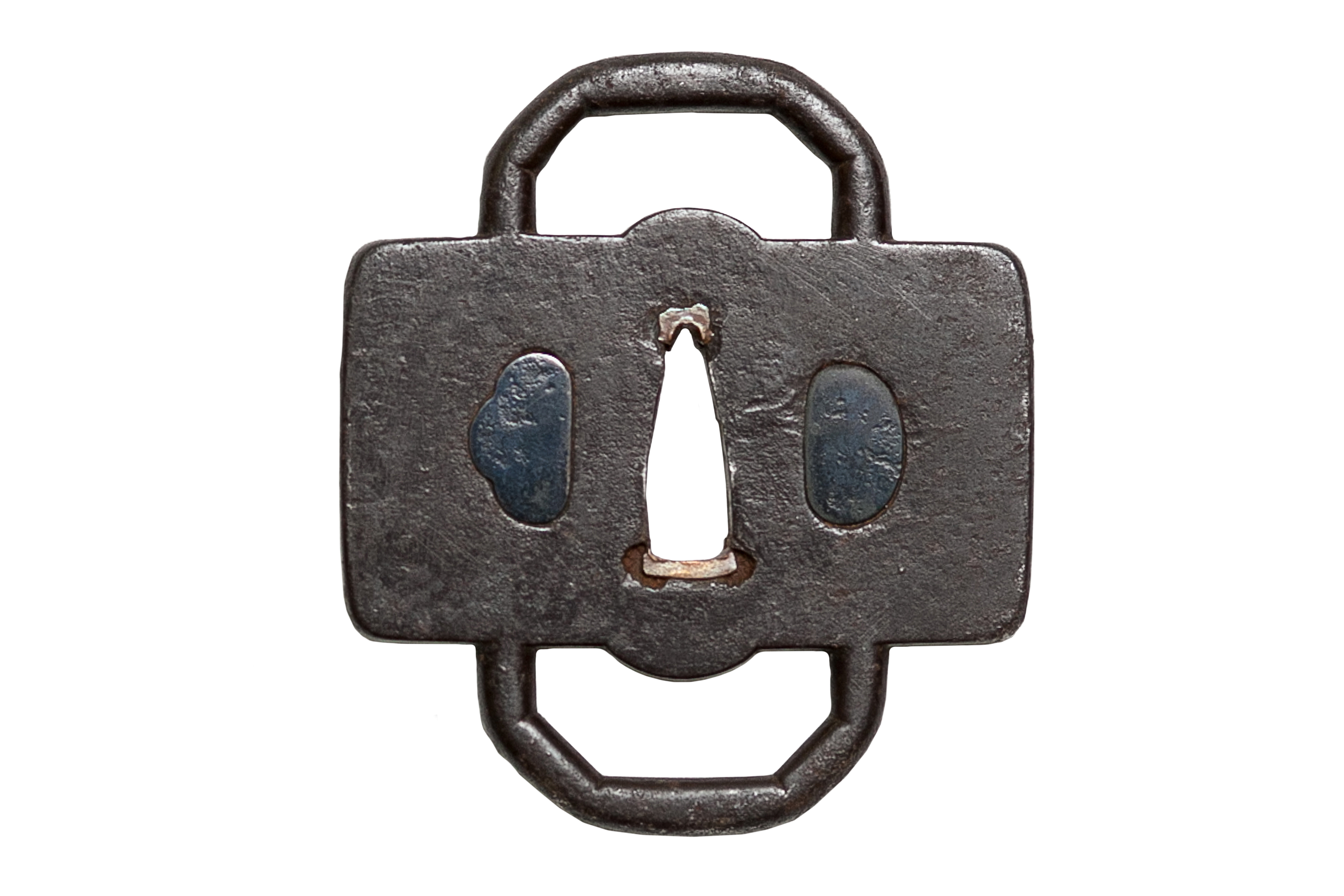 Отверстия кодзука-хицу и когаи-хицу запломбированы медными вставками умэ, покрытыми темной патиной.