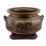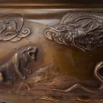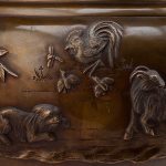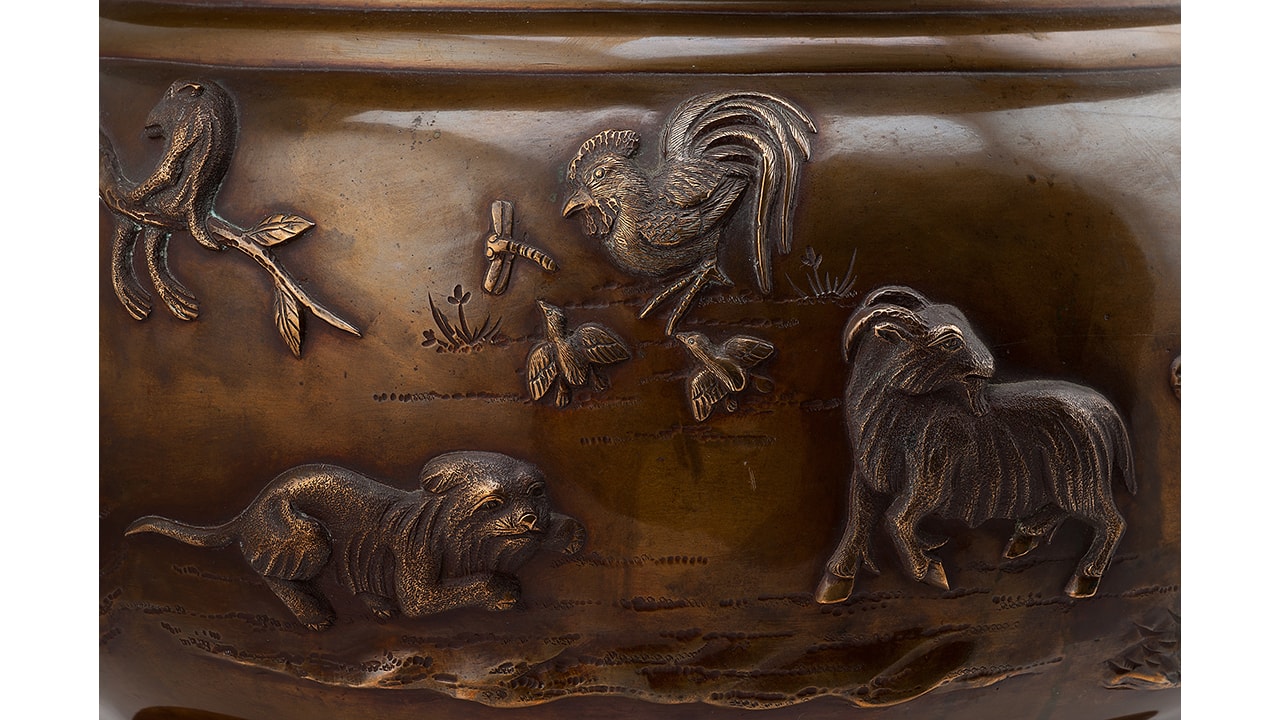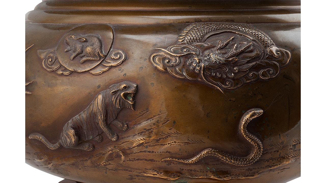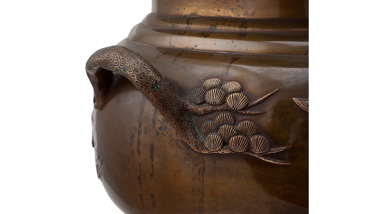 Треножник — размер: высота – 13,3 см; ширина – 24,7 см; Хибати: размер: высота – 31 см; диаметр у горла – 36,8 см; максимальный диаметр — 45,5 см