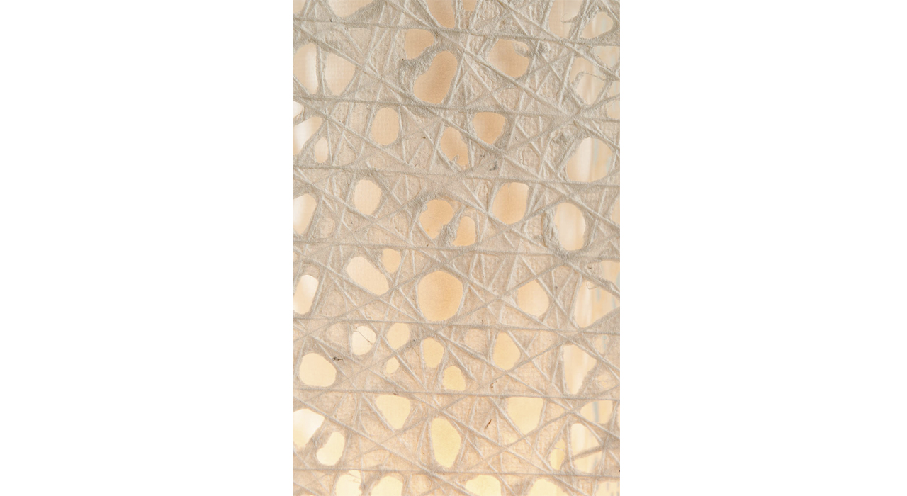 Белый цвет и волокнистая фактура бумаги придают свету особый оттенок. Благодаря мастерству дизайнеров создается ощущение, что солнце проглядывает сквозь заснеженную листву переплетенных ветвей ранней
