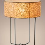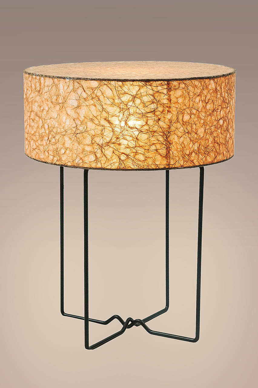 Опорой служит легкий металлический каркас черного цвета. Контраст фактурной традиционной бумаги и черного цвета подставки смотрится очень современно.