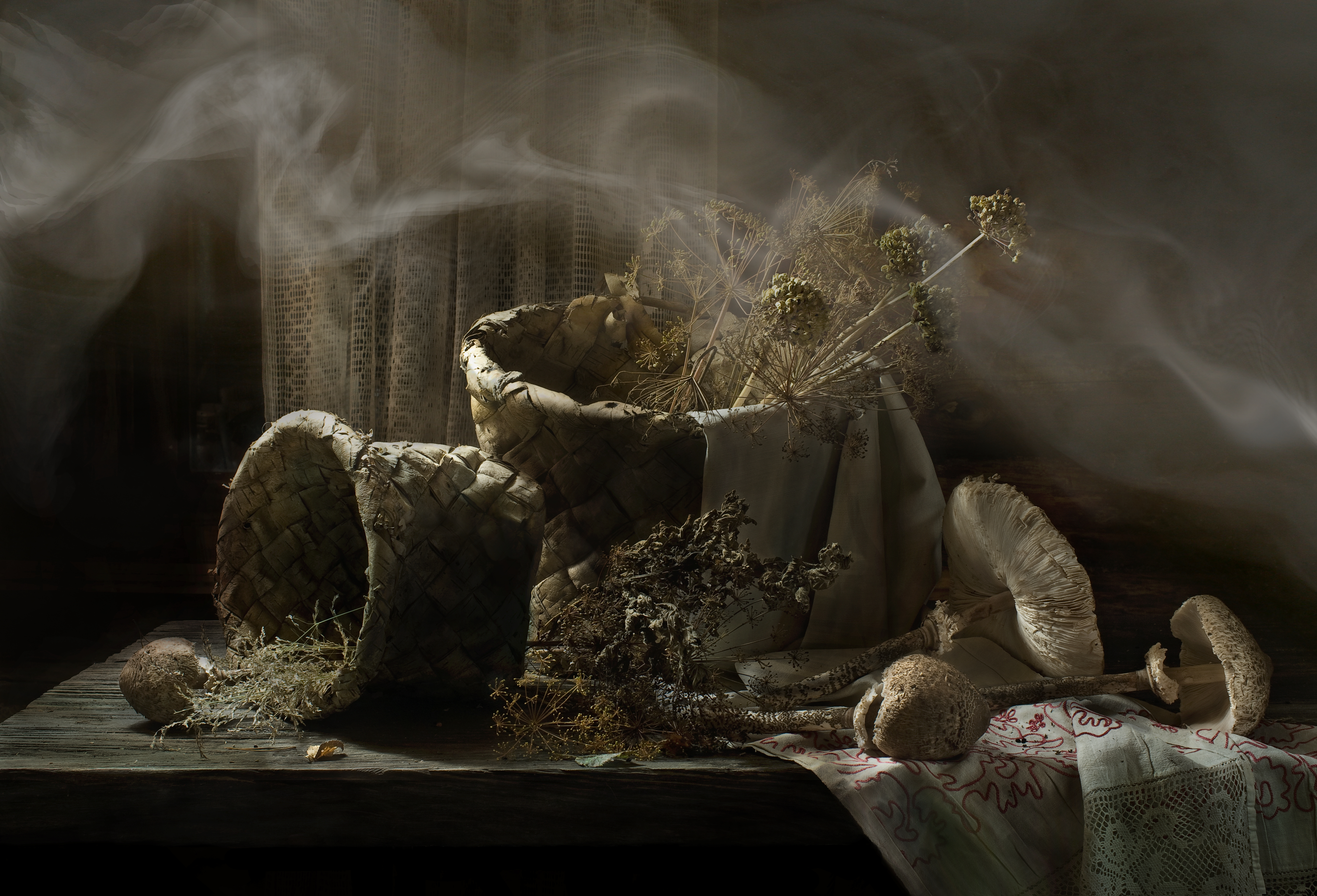 Натюрморт с корзинами и грибами