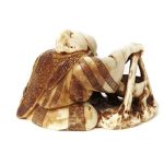 Данная работа является повтором изделия мастера Сёунсая Дзёрю второй половины XVIII века из каталога М.В. Успенского «Нэцкэ в собрании Государственного Эрмитажа» СПб, 1994, стр. 73.