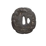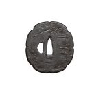 Неподписанная железная цуба в стиле школы Айдзу-Сёами , формы яцу-мокко (цветок дыни с 8 лепестками), с одним отверстием когаи-хицу .