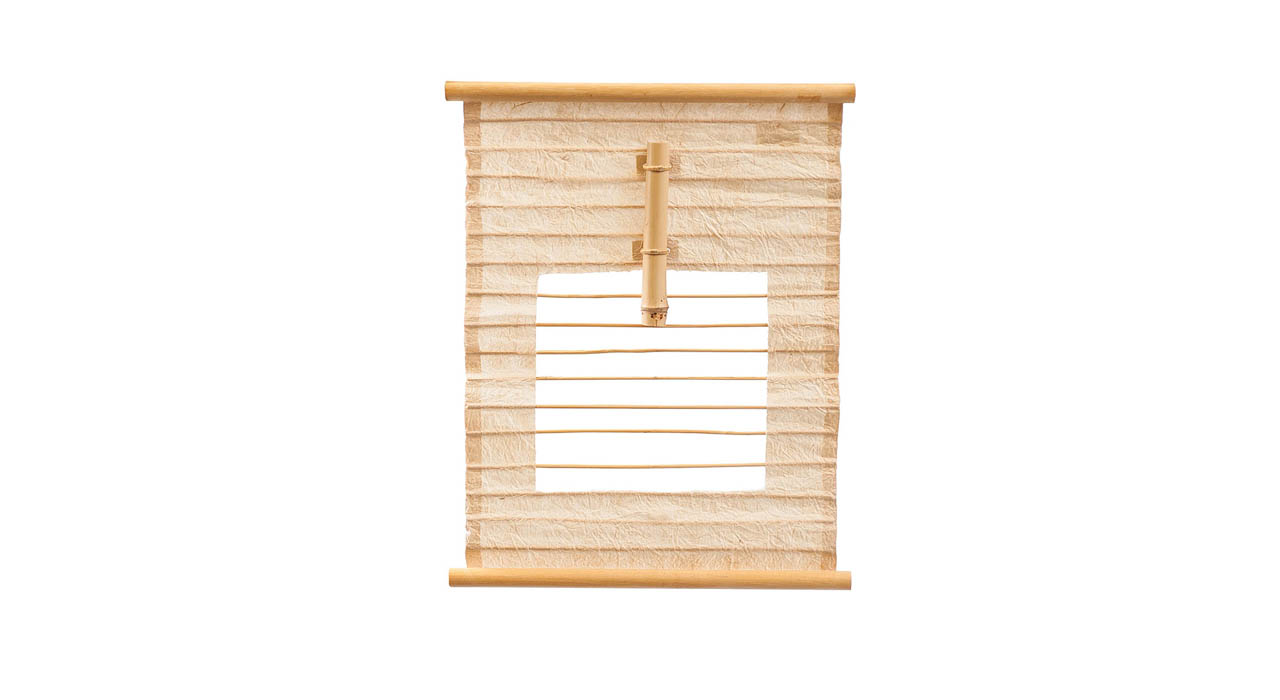 Панно среднего прямоугольного формата предназначено для декорирования стен или межкомнатных арок и выполнено из традиционной бумаги васи. Панно имеет современный дизайн и лаконичный декор. При помещении панно в межкомнатную арку солнечный свет просачивается сквозь специальное отверстие и создает в помещении чарующее пространство.