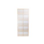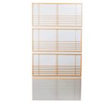 Шестистворчатое панно выполнено по старинной технологии из цельных листов бумаги васи. Ширма интересна тем, что можно регулировать её высоту, благодаря чему расширяется её функциональность: ширму можно использовать и как настенное панно, и как складную штору, и как перегородку. Ширмы издревле использовались в Японии не только как декоративный элемент интерьера, придающий особый колорит японскому жилищу, но и как разграничитель пространства, несущий особый смысл. У японцев особое метафизическое отношение к разделению пространства: древнее жилище японцев не имеет стеновых перегородок, какие приняты у европейцев — пространство разделяется путем расстановки мебели и специальных искусственных перегородок — навесных и напольных ширм. Такое пространство остается свободным и ничем не утяжеленным, но между тем разделенным на специальные сектора. Сочетание дерева и бумаги -делает изделие прекрасным образцом изделий, выполненных в эко-стиле.