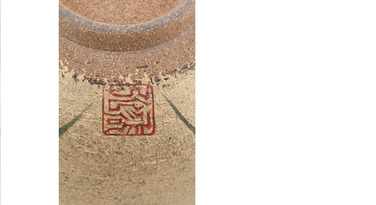 Роспись выполнена в стиле Юрикинсай (золотой узор под глазурью). В обычном варианте золотой узор краской или кусочками золота наносится поверх глазури, однако в данном стиле кусочки золотой фольги прикрепляются к основе, а потом покрываются прозрачной глазурью. Проступающий через глазурь золотой рисунок кажется изящным и мягким, однако создается ощущение прочности его прикрепления, и в целом качество таких изделий весьма высоко.