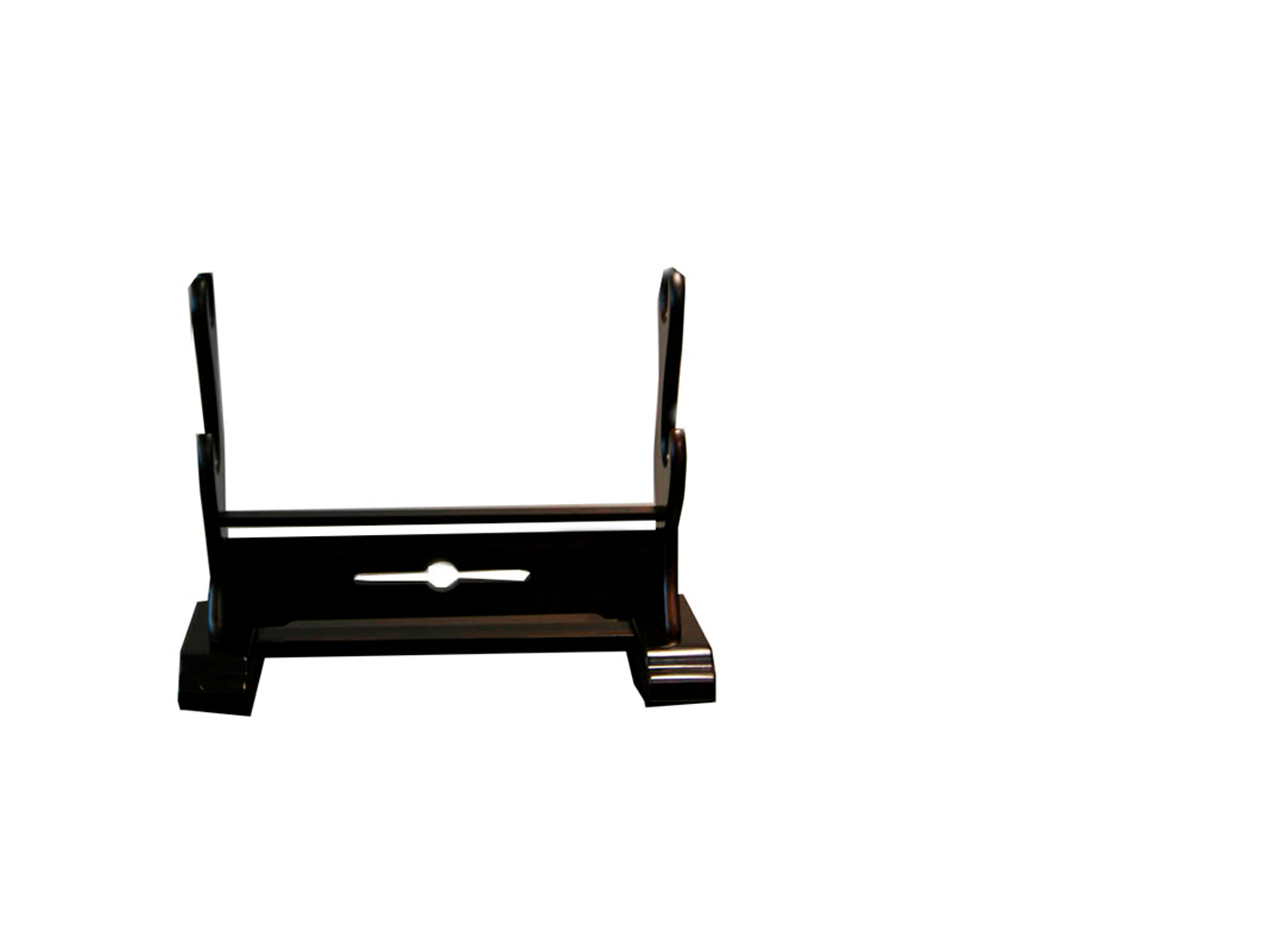 Подставка выполнена из эбенового дерева и покрыта лаком. Лаконичный дизайн подставки в сочетании с глубоким благородным цветом дерева делает изделие стильными подходящим под клинки с разным декором убранства.