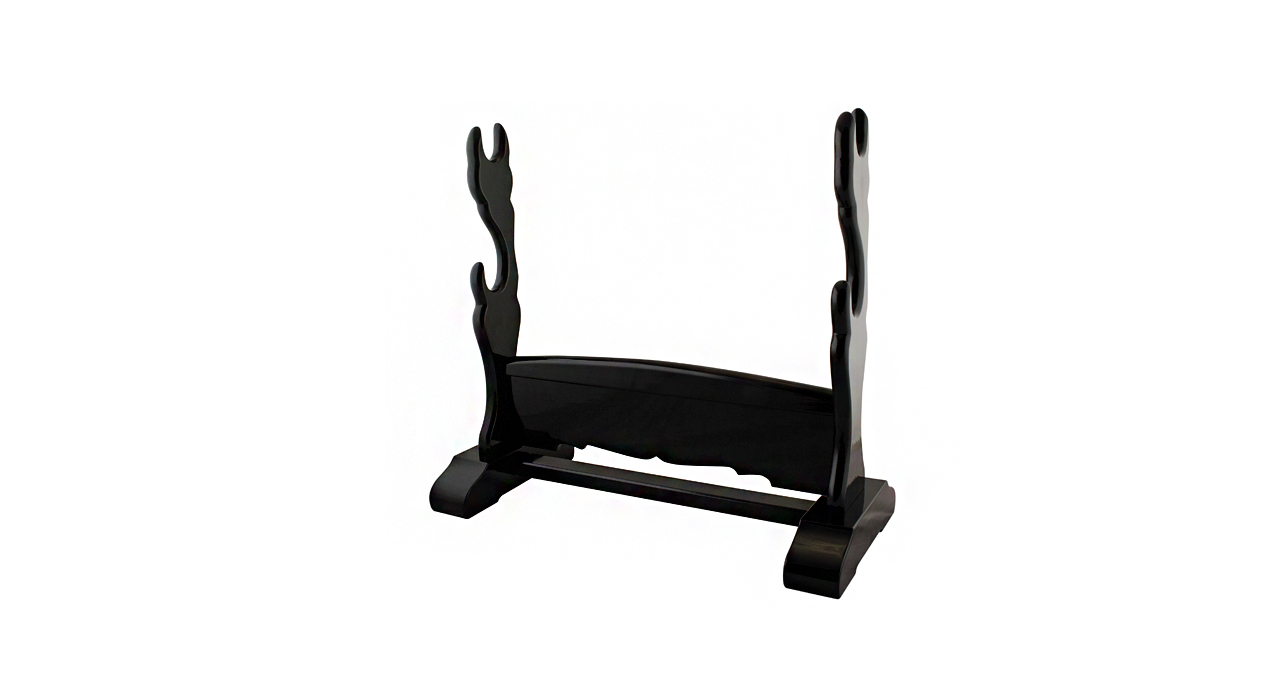 Подставка предназначена для демонстрации мечей. Подставка имеет по две фигурных выемки с боковых