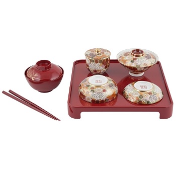 Чайный сервиз для сэнтя состоит из шести предметов – чайника с боковой ручкой и чашек с крышками.