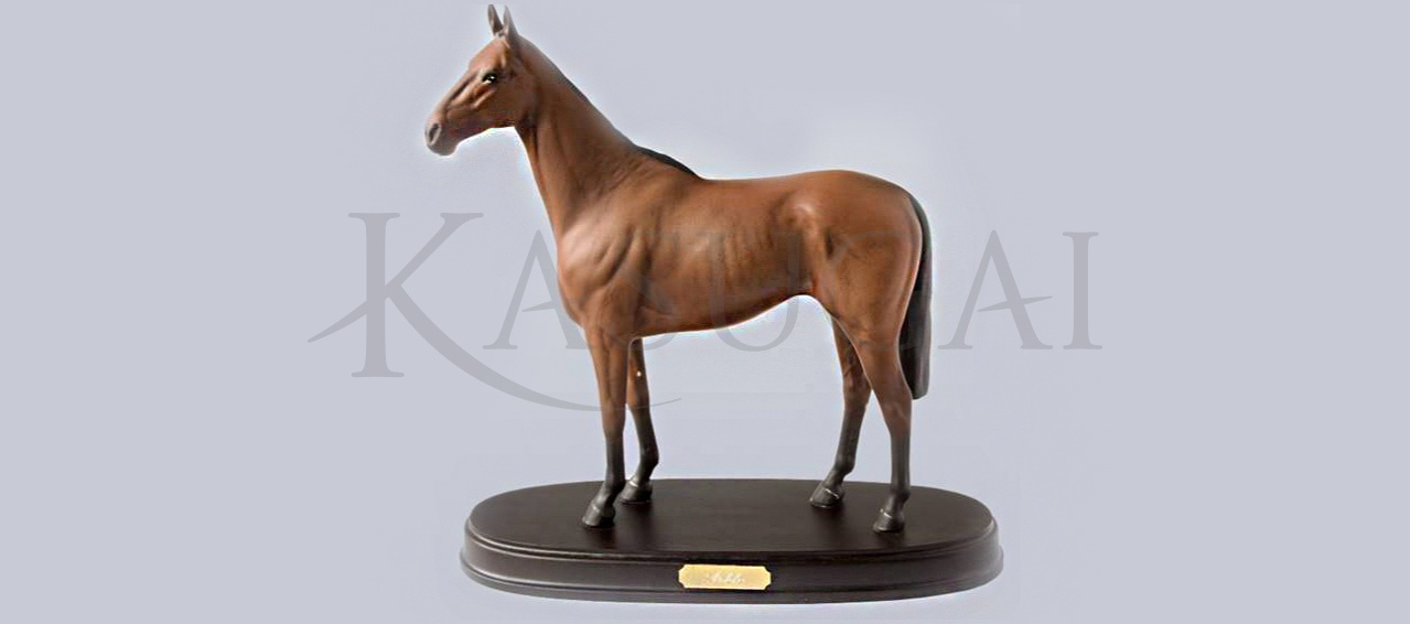 Настольная фигура лошади выполнена из высококачественного костяного фарфора. Отличительной особенностью фигур Royal Doulton является соблюдение мельчайших анатомических особенностей строения тела животного. Аркл был замечательным жеребцом, предназначенным для участия в стипль-чезе. Несмотря на сложность соревнований, в которых он принимал участие, он ни разу не упал. При упоминании его клички поклонники скачек говорят, что Аркл – это то, что обязательно надо увидеть в стипль-чезе. Он был идолом, его поклонники покупали на вес золота подковы, бывшие на копытах скакуна. Из 70 скачек, в которых выступал Аркл, он выиграл в 35, только на одних скачках он не оказался в числе призеров! Он всегда упорно боролся за победу, боролся до самого финиша. Аркл получал награды на самых престижных скачках – в Челтенхеме, Большом Национальном кубке в Ирландии, получал приз короля Георга VI и приз Хеннесси.