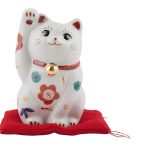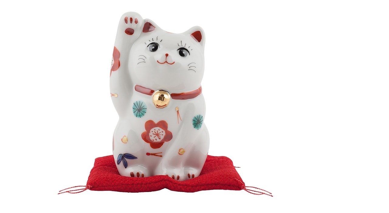 В древних китайских источниках периода Тан сказано, что «Если кошка моется и достает себе лапкой за ушами, то ждите гостей». Эта примета перешла в Японию, и в период Эдо укоренилось поверье, что самураи благодаря машущей лапкой кошке могут отогнать от себя несчастья. Со временем это поверье передалось и в других сословиях, и машущая лапкой кошка стала счастливым предзнаменованием, означающим прибавление финансов в доме и прибытие многочисленных клиентов в магазин.