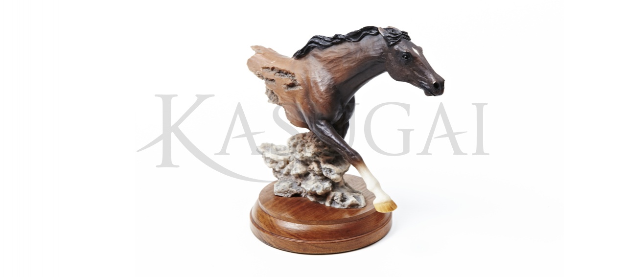 Динамичная статуэтка с фигурой грациозного, резво бегущего коня на деревянной подставке. Конь бежит вперёд так стремительно, словно разрезает пространство. Конь олицетворяет необузданные страсти, природные инстинкты, он символ бурлящих жизненных сил и скорости, воплощение природной грации и красоты. Такая статуэтка станет великолепным подарком для партнеров по бизнесу, коллег и близких людей, порадует сердца настоящих любителей животных. Отлично впишется в кабинет и придаст имидж мощного человека. Будет олицетворять стремительность, выносливость, неудержимость своего хозяина, станет символом успеха в карьере, бизнесе. По древней традиции фэн-шуй статуэтку с изображением коня лучше всего располагать в южной части комнаты, в зоне карьеры и репутации. Не рекомендуют поворачивать коня к двери или окну, так как удача может ускакать.