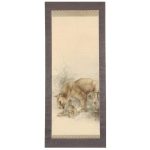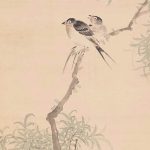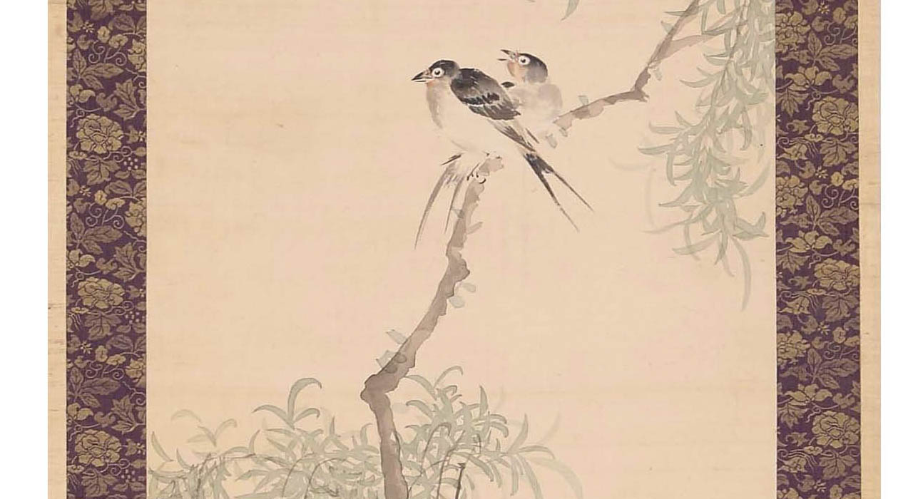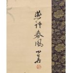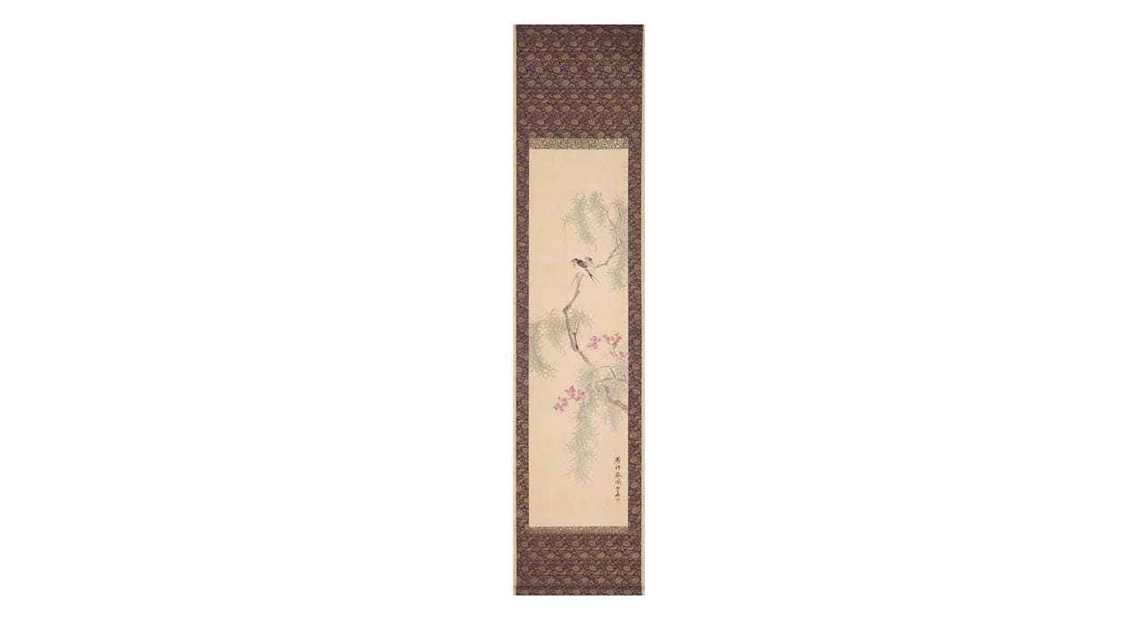 Мастер: Ватанабэ Сёка (Watanabe Shoka) На свитке вертикального формата изображены ласточки, порхающие в небе на фоне цветущих ветвей сливы. Свиток выполнен в стиле традиционной японской живописи. В правом нижнем углу имеется печать и подпись мастера иероглифами. Художник стиля Нихон-га. Родился в провинции Микава (современная префектура Айти) в 1834г. Старший вассал дома Тахара. Был вторым сыном Ватанабэ Кадзан. Отец умер, когда мальчику было 7 лет. После этого Сёка поехал в Эдо, где учился у ученика своего отца — мастера Цубаки Тиндзан. В 1856 году его старший брат, бывший личным секретарем семейства Тахара, внезапно скончался, и Сёка стал главой семьи. Он женился на приемной дочери мастера Тиндзан и стал главным вассалом дома Тахара, однако потом перебрался в Тоёхаси и начал зарабатывать на жизнь художественным творчеством. На Первой всеяпонской промышленной выставке получил специальную награду Камонсё, на первой Японской художественной выставке получил бронзовую медаль. Особенно известен был картинами в жанре «цветы и птицы». Ватанабэ Сёка умер в 1887 году, в возрасте 53 лет.
