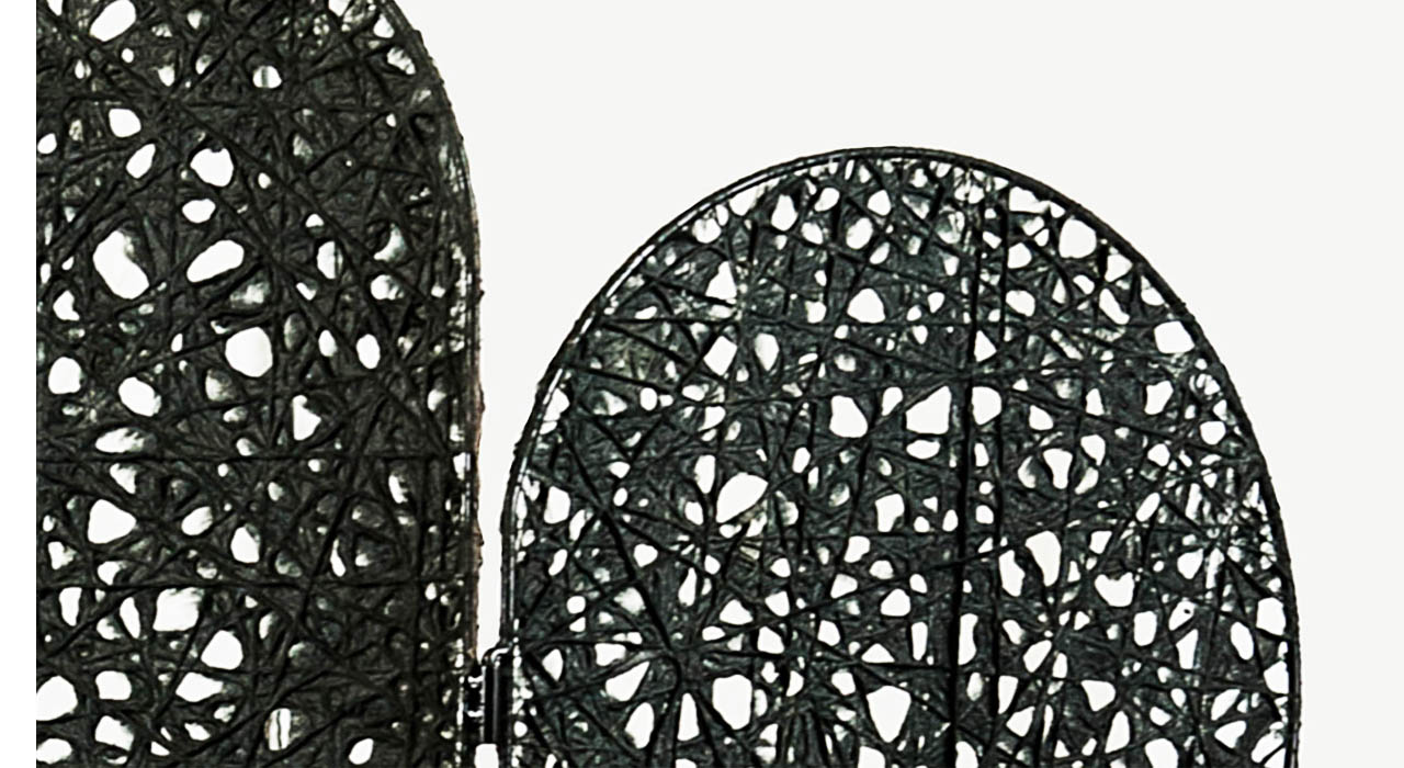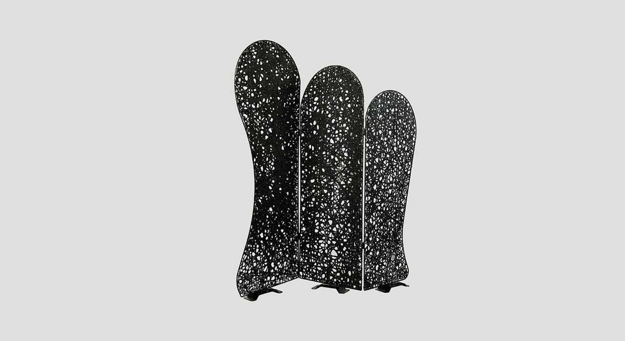 Трёхстворчатая ширма выполнена из традиционной бумаги васи черного цвета, изготавливаемой по особой технологии. Ширма имеет современный обтекаемый дизайн и станет оригинальным акцентом в интерьере — от эклектики до хайтека. Несмотря на свою видимую воздушность, бумага васи обладает особой прочностью.