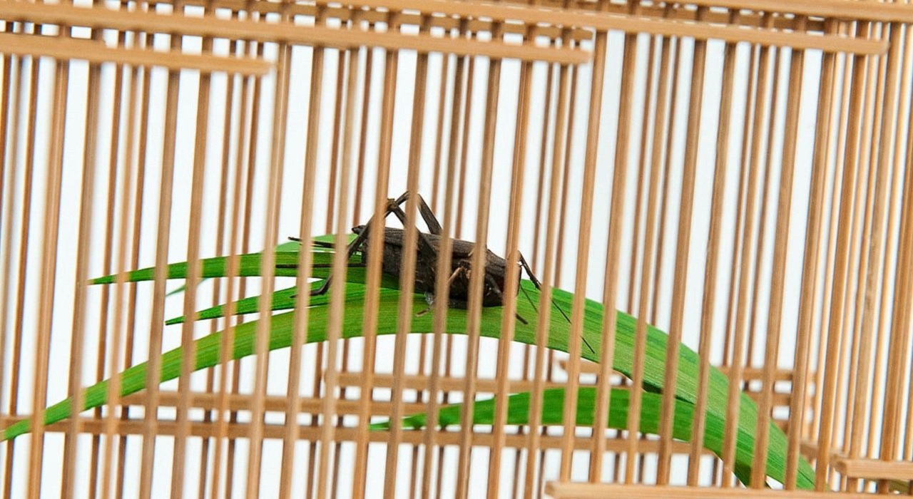 Изделие представляет собой традиционную бамбуковую коробочку для насекомых. Внутрь коробочки помещена миниатюра в виде кузнечика – миниатюра, также выполненная из бамбука. Коробочка может стать оригинальным украшением для детской комнаты или кабинета. Её можно поставить на полку или подвесить на специальном шнурке.